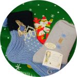 お揃いの水色であなたの足元をピーターラビットに。クリスマス本番には、靴下に6ペンス銀貨が入ってるかも |