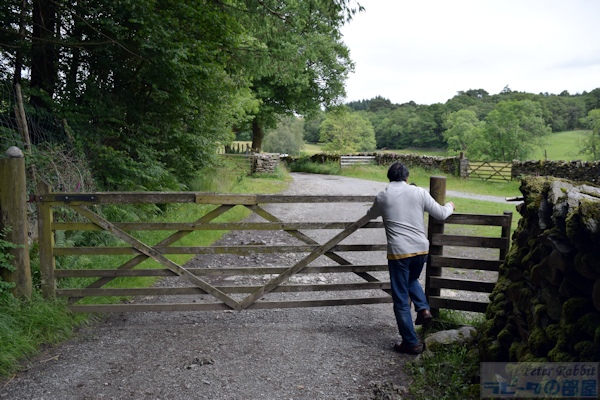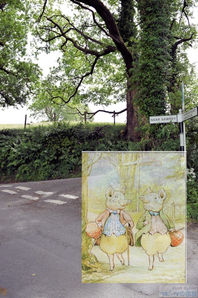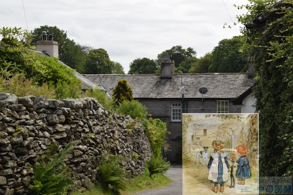 ▼モス・エクルス湖へ向かう道中にも絵本の舞台が続々登場 ヒルトップ農場を堪能した後、その隣には『あひるのジマイマのおはなし』で描かれたタワー・バンク・アームズ、その先に『パイがふたつあったおはなし』や、『こねこのトムのおはなし』で描かれたバックル・イート、そしてニアソーリーのポストがあります。 ![]() タワー・バンク・アームズ(Tower Bank Arms) ![]() バックルイート(Buckle Yeat) ![]() ダッチェスが立っていた玄関先の横に、何故かマグレガーさんが! ![]() ニアソーリーのポスト このポストは、1928年に出版された『ピーターラビットの暦本』の2月の挿絵として、ピーターラビットとそれを見守るフロプシーたちが描かれ、そしてこの作品が広まることで一躍有名になりました。ここに来たらピーターと同じ構図でポストカードを出してみたいと思うことでしょう。私も2003年に訪れた時、このポストに投函しました。 ![]() ポストまでやってきたら、後ろを振り返った先につながる道路へと進んでいきます。この道は、ストーニー通り(Stoney Lane)という通りで、ポストを背にして右側に『「ジンジャートピクルズ屋」のおはなし』の舞台となった雑貨店がありました。こちらは改築され、昔の面影が少し残っているだけです。 ![]() そして通りを少し先に進んで振り返ってみると、『ひげのサムエルのおはなし』で、ヒルトップハウスを逃げ出したサムエルとアナ・マライア夫妻が後ろを振り返った先にビアトリクスが立っている、そんな場面を思い起こします。 ![]() さらに先に進んで、右側に横丁が見えてくるとそこは鍛冶屋横丁で、『「ジンジャートピクルズ屋」のおはなし』で、ピクルズが巡査にばったり出会う場面です。 ![]() ストーニー通りをさらに進むと、少しずつ登り坂になり、左手にB&Bの「ベルグリーン」があります。ここはビアトリクスがヒルトップハウスを改装中に宿泊した場所です。 ![]() 右手に見える「カースルコテージ」は、ビアトリクスが結婚後移り住んだ場所です。 ▼ニアソーリーの永遠に変わらないと思った景色に変化が ![]() そして『ひげのサムエルのおはなし』に描かれたバレイショさんの納屋は、なんだかおしゃれなコテージに変わっていました。 ![]() 目の前のゲートの先は、舗装されていない道となり、いよいよモスエクルス湖へと続きます。舗装されていない道路に入る前にゲートがあり、ここは『こねこのトムのおはなし』で描かれたドレーク一家が立ち去っていく場所です。 ![]() ひとつ上の写真と同じ場所ですが、私が2003年に訪れた時の様子。この道の両脇におしゃれなコテージが建ち、この辺りの雰囲気が変わってしまいました。まったく変わらぬ景色の存続は、様々難しい事情があったかもしれませんが、少し残念です。 さて、ドレークとジマイマとレベッカが向かった先にあるモス・エクルス湖へ、私達も「ぴたり、ぱた、ぱたり、ぱた」と目指しました。 |