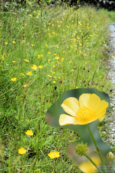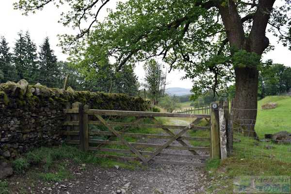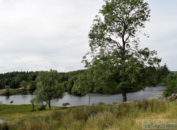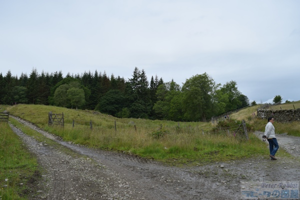 ▼モス・エクルス湖まで道のり ニアソーリーのメイン道路から徒歩約30分のところにあるモス・エクルス湖は、ニアソーリーの絵本に描かれた舞台の各所をたどりつつその先にあります。 ストーニー通りよりその続きです。目の前のゲートの先は、舗装されていない道となります。ツアー参加の皆さんには「汚れても大丈夫な靴を別にご用意ください」とお願いしておきました。この日は特に靴が汚れるほどの酷い状態ではなかったのですが、突然雨が降ったり気候の変動が激しい地域なので、靴の予備があれば便利です。 ![]() ストーニー通りは、写真を見てもらっても分かる通り、緩やかな登りとなります。 ![]() ここを少し登ると、右手に樹洞のある大木がありました。ブラウンじいさまの住処のような樹洞で、もしかしたら本当にフクロウが住んでいるかもと思うほどでした。 ![]() モスエクルス湖へ続く道は、英国のフットパスでもなく、農場のトラックなども普通に行き交う道ですが、このように閉じられているゲートがあれば、ゲートは動物が勝手に逃げ出さないために設けられているものなので、開けたら必ず閉めれば通行は自由に行えます。先頭を歩いていた河野先生が率先してゲートを開けてくださいました。 ![]() このゲートの隣にあるもうひとつのゲートは、ニアソーリーの隣町ファーソーリーに向かう道です。ウィンダミア湖の方角(逆の方向)に進む道になりますのでご注意ください。 ![]() 左手の森の中へと通じる分かれ道のような個所もありましたが、特に道標はなく、私達は先生がいらっしゃったので迷うことはありませんでした。 ![]() この分かれ道を過ぎた辺りから、ゴツゴツとした岩が見え始めます。 ![]() その先にやっと道標がひとつありました。クリフ・ハイツ(Claife Heights)は、モス・エクルス湖の先にあるこの山の山頂(標高270m)で、湖(The Tarns)は、モス・エクルス湖を含むこの先も湖がいくつかあるのでこのような表現になっています。ですので、The Tarnsを目指し右の方向へ。 ▼モス・エクルス湖 ![]() モス・エクルス湖(Moss Eccles Tarn)は、ビアトリクスが1913年に購入した湖で、現在ナショナル・トラストが管理しています。 初めて湖水地方に訪れた2001年は、口蹄疫の影響で立ち入り禁止で、最初のゲートが閉じられたままでしたた。そして2回目に訪れた際は、道がよく分からなくて断念しました。そして3回目、河野先生の案内でようやくモス・エクルス湖にたどり着きました。 ![]() 朝は素晴らしい天気だったのに、段々と雲行きが怪しくなり、絵画のような美しさにはなりませんでした。 ![]() 『こねこのトムのおはなし』で、脱げたトムたちの服を探している場面にスイレンの葉が描かれています。6月はスイレンの花が開花する時期で、私達も水面に目を凝らすと、白い美しい花が咲いていました。 ![]() この湖に植えた赤と白のスイレンは、ビアトリクスが姪のナンシーと植えたものだそうです。ようやく訪れることができたモス・エクルス湖は、とても静かで自分が立てる物音が、辺り一面響き渡るほどの静けさです。対岸の木立と空と水面が織りなす美しい景色に、例え曇り空だとしても吸い込まれそうでした。 ▼モス・エクルス湖はビアトリクスの憩いの場所 ビアトリクスは、夏の宵に、夫ウィリアムと散歩で訪れ、湖面にボートを浮かべ、ウィリアムは釣りに勤しんだとか。一日の疲れが癒されるそんな大切な場所のひとつだったに違いありません。私もやっとここにたどり着くことができ、幸せな気持ちに包まれました。 それからもうひとつ気になっていた箇所は、『キツネどんのおはなし』の冒頭、キツネどんの冬と春先の棲家があるとされた「オートミール・クラッグ(日本語訳:いわやまのてっぺん)」の下のブル・バンクスとあり、このオートミール・クラッグがどこなのか特定できればいいなと思っていました。 地図を見ると、モス・エクルス湖へと続く道の左側の森が「オートミール・クラッグ」となっているのですが、森の手前に岩石が露出している場所があり、ビアトリクスが残した最大のヒントである「岩のトップがテーブル状になっている」という点。 ![]() ここがオートミール・クラッグだったらいいのになぁという場所。河野先生に確認したところ、ニコニコ笑って否定も肯定もされません。きっと「そこは違うと思うよ」という意味だと思います。もっとこの辺りをじっくりと観察して調査しなければ分からない場所のひとつなんだろうと思います。初めて行ってちょこっと見ただけでそうではないかと思ってしまうぐらい、絵本の魔法にかかっている証拠ですね。実際、こんな見晴らしの良い場所に、ミスター・トッド(きつねどん)が住処を作るはずがない。 ▼道中で見つけた草花 ![]() バターカップ(キンポウゲ)。あちこちに黄色の可愛い花が咲いていました。この花は毒があり、草食動物が食べると中毒になるため、野生のうさぎも食べません。こうして一面バ