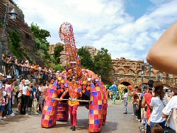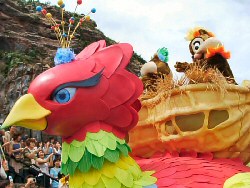 ディズニーシーに行ってきた。2001年9月にグランドオープンしたディズニーシーも今年で丸2年が経過しパーク内は2周年のお祝いイベントが開催されていた。 平日に休みが取れることはめったにないので、ディズニーシーに来たのだが考えてみたら2年前に既に行っていたのでもう見るところはほとんどないと思っていた。 それなのにどうして来てしまったかというのは、前回強風でベネチアン・ゴンドラに乗れなかったことと、お昼の目玉のショー「ポルト・パラディーゾ」が同じく強風で中止になって見れなかったことが心残りでまた来てしまった。 今回はそんな見れなかったショーを中心に見るぞーとはりきる。 ![]() 開演前のグリーティング。目の前にミッキーとミニーがやってきて手を振ってくれる。この場所に来ると「ミッキーとミニーもやっぱりかわいい」って思ってしまうから不思議だ。 ![]() 朝一番のメディテレーニアハーバー ![]() 異国情緒たっぷりのこの景色。ディズニシーはアトラクションを楽しむというよりは、異国の地に舞い降りたような気分にさせてくれる景色を堪能できる場所。 街が目覚めた直後の景色はその気分を満喫することができる。 ![]() まず乗ったのが、待望のヴェネツィアン・ゴンドラ 海風がきつくなる前の午前中に乗るのがやっぱりおすすめかしら。 陽気なゴンドリエがカンツォーネを唄ってくれます。なかなか素晴らしい歌声でしたよ。 ![]() カンツォーネを唄ってくれたゴンドリエ ![]() 「リドアイル ミート&スマイル」 ミッキーとその仲間たちが、ようこそディズニーシーへと挨拶にやってきてくれるショー。 ![]() ![]() 来てくれてありがとうってミッキーと仲間達が陽気なダンスを披露。客席にも走ってきてくれるミッキーは、ゲストにハイタッチしてくれる。 ![]() ニューヨーク・デリで食べた、ディズニーシー2周年記念ランチボックス(記念ランチボックス付き) ![]() いたるところで、2周年を祝福するお祝いムードが広がり、とても華やかな飾り付けがなされていた。 ![]() ショップのウィンドウディスプレイ ![]() ニコロズ・ワークショップ 工芸家ニコロのワークショップらしい。 まだたった2周年なのに、この建物の重厚感は。。1800年代からどっしりと身構えているような雰囲気を漂わせる。 植物も秋をイメージした植物に植え替えられている。ススキの穂みたい。 ディズニーシー2周年を記念して、この期間だけ特別に陸上パレードショーが開催されていた。 ディズニーシーでは、陸上パレードショーはこれが始めて。船もたまには陸に上がるのもいいかもね。 ![]() ![]() ![]() ![]() ![]() ![]() SSコロンビア号の前では「セイル・アウェイ」というショーが開催されている。 ![]() 出向前に航海の無事を祈ってセレモニーが開催される。船長はもちろんミッキーだけど、その前にドナルドがおもしろ、おかしく盛り上げてくれる。 ![]() さぁ、いよいよミッキー船長のお出ましということで電池切れ。 午後のメインショー「ポルト・パラディーゾ」の始まり〜 ![]() 活火山プロメテウスが間近に迫って見えるポイントでショーを堪能。 ![]() ![]() ![]() ![]() ![]() ![]() メディテレーニアハーバーの4ヶ所ほどある場所にそれぞれミッキーや、ドナルドがやってくるのようだった。私が見ていた場所にはミニーがやってきた。色鮮やかな衣装が目にまぶしい。 ![]() アメリカン・ウォーターフロントにあるブロードウェイ・ミュージックシアター。 ここでは「アンコール」というショーが開催されている。煌びやかで、ゴージャスなショー。 ![]() ヴェネツィアン・ゴンドラのゴンドリエに教えてもらった「おいしいよ」というレストラン 「リストランテ・ディ・カナレッタ」 前菜と窯焼きピッツァに、パスタ ![]() もうすぐ夕闇が訪れるメディテレーニアハーバー ![]() 夕刻迫るロストリバーデルタ ![]() 夕焼けのアラビアンコースト ![]() 夕焼けのアラビアンコーストの入り江 ![]() 薄闇が訪れたアラビアンコースト なぞのへび遣い 宙に浮いてる?! ![]() 薄闇に浮かび上がるミステリアスアイランド ![]() 夜になると火山の噴火もより一層迫力がある。 ポートディスカバリーのアクアトピアは、夜の方が断然きれい。光の帯が妖しい光を放つ ディズニーシーは、昼間の風景よりも夜景の方が断然きれい。水に映えるライトが幻想的で素晴らしい。 ![]() この日は火星が月に大接近ということで、ディズニーシーをバックに宇宙の大スペクタクルショーも見られた。 ![]() SSコロンビア号の夜景 ![]() 宿泊客しか入れないと思っていた「ホテルミラコスタ」 パスポートを持っていれば何の問題なく中に入ることができた。ホテルの吹き抜けロビーにはブロンズの船が。 ![]() 最後はやっぱり正面ゲートにある「アクアスフィア」 夜の最大のショーは、どうしても撮影が難しい。花火がぽんぽんあがって夜空に幻想的な雰囲気を繰り広げてくれるのだけれども、暗闇でピントが合わない上に、夜のショーが見渡せる良いポ