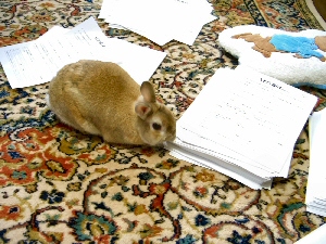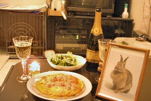 旅行記ではないけれど、1年の締めくくりネタとしてクリスマスのひとこまを紹介 2004年クリスマス。今年で7度目のクリスマス。 ぐぅがサンタ帽子をかぶるようになって4年目。ようやく帽子が似合ってきたかな。かっこいい! ![]() 1998年クリスマス ![]() 1999年クリスマス ![]() 2000年クリスマス ![]() 2001年クリスマス ![]() 2002年クリスマス ![]() 2003年クリスマス ![]() さてさて、今年のクリスマスプレゼントはというと。。。 いつもの野菜に大好きなりんごが乗ってる。うは、うは。 ![]() ぐぅ「むしゃむしゃ、ボリボリボリ」 一心不乱に食べるぐぅのムービーは→→→クリック (ムービーが一瞬暗くなるのは、電灯を消したからです。) ![]() お客様がいらっしゃらない限りホームパーティなんて開かないのだけれども、珍しくピザ&シャンパンを用意してミニクリスマスパーティを始める。 クリスマスケーキは、25日のケーキ屋が閉店となる1時間前に行き、半額になったものを購入。 シャンパンを飲みながら、見たくても忙しくてずっと見ることができなかった「ロードオブザリング 王の帰還」を見る。 3時間以上もある映画はあっという間だった。でも自分が予想していた通りの展開にちょっと驚き。ツメアゴルの落下シーンの落ち方、顔の向きまでも想像通りだった。 予告編はそこまで流れてはいなかったと思ったけど、なんでそう思ったのだろう。不思議だ。 おまけ)やってもやっても終わらない仕事。 アンケート結果を集計するという作業は、想像以上に大変だった。 出てくるのはため息ばかり〜 苛立ちも最高潮に達し、アンケート用紙を床にばら撒いて仕事していたら、ぐぅが私の仕事を手伝ってくれた。 ![]() ぐぅ「ふむふむ、なるほどねぇ〜。僕も参考にしようっと」 なんだか胸なごむ瞬間。うさぎらしく生きるとは〜こういうことなのかな。 <2005.1.5 2004年クリスマス> |