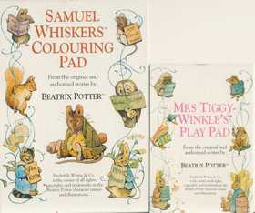 ・「Beatrix Potter's Painting Book 1: Outling Pictures from the Peter Rabbit Books」 1961年 ピーターラビット・シリーズの絵本より、抜粋した場面を塗り絵帖として出版したもの。 ![]() ・「Beatrix Potter's Painting Book 2: Outling Pictures from the Peter Rabbit Books」 1978年 ![]() ・「Mrs. Tiggy-Winkle and Her Friends Colouring Book」 (ISBN: 0-7232-3319-5) 1985年 ![]() ・「Tom Kitten and His Friends Colouring Book」 (ISBN: 0-7232-3330-6) 1985年 ・「Jemima Puddle-Duck and Her Friends Colouring Book」 (ISBN: 0-7232-3318-7) 1985年 ・「Hunca Munca and Her Friends Colouring Book」 (ISBN: 0-7232-3402-7) 1986年 ・「Squirrel Nutkin and His Friends Colouring Book」 (ISBN: 0-7232-3403-5) 1986年 ・「Peter Rabbit and His Friends Colouring Book」 (ISBN: 0-7232-3329-2) 1986年 ![]() ・Peter Rabbit and His Friends Colouring Book (The World of Peter Rabbit Collection 2) 1987年 (ISBN:0-7232-3329-2) ・「THE BIG PETER RABBIT COLOURING BOOK」 1988年 (ISBN:0-7232-3572-4) ![]() ・「Peter Rabbit's Colouring Book」 1988年 (ISBN:0-7232-3631-3) ![]() ・「Peter Rabbit's Copy Colouring Book」 2005年 (ISBN:0-7232-5390-0) ![]() ●Ladybird「Colour-in stories」シリーズ (Ladybird Books Ltd.)