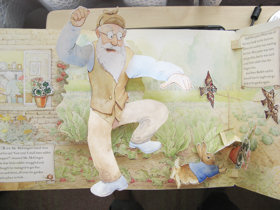 ●パノラマPop-up(Stand-up)ブック おはなしでおなじみの4つの背景がパノラマPop-up絵本となり、そこにピーターとその仲間たちが登場します。 ![]() 「Peter Rabbit and Friends A Stand-Up Storybook」 FREDERICK WARNE (ISBN: 0-7232-4343-3) 1998年 本を広げると4つの場面が展開される3Dパノラマ絵本となります。 ![]() - - - - - - * * * * * - - - - - - - ●新装版 A Pop-up Adventure ピーターラビット 「The Tale of Peter Rabbit」の挿絵に描かれた部分を、飛び出す絵本として忠実に再現し、迫力があるぼうけんが楽しめる新装版の大型飛び出すPop-up絵本です。 ![]() 「The Tale of Peter Rabbit A Pop-up Adventure」 Beatrix Potter The Original and authorized edition FREDERICK WARNE (ISBN:0-7232-5704-3) 2005年 (274x220mm) 日本語訳) ![]() 「ピーターラビットのぼうけん 大型しかけえほん」 ビアトリクス・ポター きたむらまさお(訳) 大日本絵画 (ISBN:978-4-499-28132-4) 2005年 - - - - - - * * * * * - - - - - - - ●新装版 「A Lucky Escape」 ピーターラビットと仲間たちのミニレターを掲載した書籍「YOURS AFFECTIONATELY, PETER RABBIT (訳本:ピーターラビットのてがみの本)」がありますが、ピーターラビットがマグレガーさんに宛てた1枚の手紙から巻き起こるぼうけんを、大型Pop-up絵本として創作したオリジナル・ストーリーです。 ![]() 「Peter Rabbit A Lucky Escape」 FREDERICK WARNE (ISBN:978-072325-927-5) 2007年 (296x250mm) 日本語訳) ![]() 「ピーターラビット ピーターのおでかけ」 ビアトリクス・ポター かがわけいこ(訳) 大日本絵画 (ISBN:978-4-499-28218-5) 2008年 「A Lucky Escape」 の2008年改訂版) ![]() 「Peter Rabbit A Lucky Escape」 FREDERICK WARNE (ISBN:978-072325-988-6) 2008年 (296x250mm) - - - - - - * * * * * - - - - - - - ●新装版 A Pop-up Adventure ベンジャミンバニー 「The Tale of Benjamin Bunny」の挿絵に描かれた部分を、飛び出す絵本として忠実に再現し、迫力があるぼうけんが楽しめる新装版の大型飛び出すPop-up絵本です。 ![]() 「The Tale of Peter Rabbit And Benjamin Bunny A Pop-up Adventure」 Beatrix Potter The Original and authorized edition FREDERICK WARNE (ISBN:0-7232-6329-9) 2008年 日本語訳) ![]() 「ピーターラビットとベンジャミン・バニー」 ビアトリクス・ポター 上野和子(訳) 大日本絵画 (ISBN: 978-4-499-28292-5) 2009年 - - - - - - * * * * * - - - - - - - ●ミニチュアサイズ mini Pop-up絵本 118x118mmサイズのミニチュアサイズの飛び出す仕掛けPop-up絵本。イースターの贈り物として、イースターバスケットの中に入るサイズとして出版されました。 ![]() 「Peter Rabbit and Friends a pop-up book」 FREDERICK WARNE (ISBN:0-7232-5888-0) 2008年 - - - - - - * * * * * - - - - - - - ●新装版 イースター・エッグハント(Easter Egg Hunt) ピーターとその仲間たちが、イースターをお祝いしてエッグハント競技をします。あちこちに隠されているイースターエッグをたくさん見つけましょう。すべてのページに飛び出す仕掛けはなく、めくり仕掛けやミニつまみ引きなどの仕掛けもあります。 ![]() 「Peter Rabbit and the EGG HUNT」 FREDERICK WARNE (ISBN:0-7232-6354-X) 2009年 - - - - - - * * * * * - - - - - - - ●新装版 冬物語(A Winter's Tale) ビアトリクス・ポターより生まれたピーターと仲間たちのキャラクターが登場する冬物語がポップアップ絵本となりました。キラキラ光る粉雪の装飾と飛び出すクリスマスツリーは圧巻です。 ![]() 「Peter Rabbit A Winter's Tale」 FREDERICK WARNE (ISBN:0-7232-6431-7) 2009年 ![]() 一番最後のページ。冒険を終えてピーターとベンジャミンが雪化粧したもみの木(飛び出す仕掛け)の下にある家に帰ってきました。このもみの木には、途中のページにある小さなポケットに隠されている雪の結晶(snow flakes)をデコレーションすることができ(右の写真)、光が当たるとキラキラとキレイです。 日本語訳) (画像無し) 「ピーターラビット 冬のおはなし」 大日本絵画(ISBN: 978-4-499-28296-3) 2009年10月 |