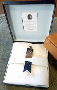出版100周年記念として、本革張りボックスに入った、「The Tale of Peter Rabbit」が発売されました。 セット内容 ・豪華本革張りボックス ・「The Tale of Peter Rabbit」 ・ブックレット ・ボックスで使用した同じ素材の革製のしおり これらがセットとなり、500部限定で100周年となる記念年に出版。 また、同セット内容で、ボックスのサイズがひと回り大きい記念版には、 ・ビアトリクスが物語の舞台として描いた水彩画の作品6枚 が追加され、100部限定で出版されました。 |