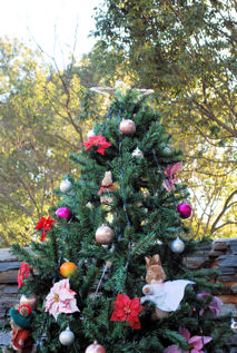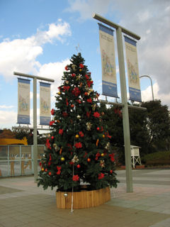 園内に大きなピーターラビットのキャラクターツリーが初めて登場した記念の年です。4つ登場しました! ![]() こちらがピーターラビットのクリスマスツリー ツリーの飾りは、赤いリボンと、ピーターのマスコット人形、そしてにんじんがぶら下がっていました。 |