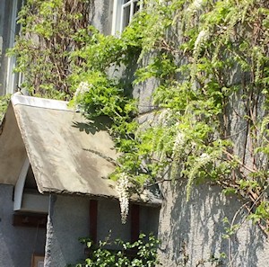 ![]() ビアトリクス・ポター資料館の外壁をつたう白いフジ。訪れた日は、まだ咲き始めでしたが、満開になるのは例年ゴールデンウィーク後半あたりだとか。 ビアトリクス・ポター資料館が開館8周年を迎えました。オープニングセレモニーに一緒に出掛けた友人たちに、「開館8周年の記念講演に行きましょう」と声をかけましたら、みな口を揃えて「もう8年も経つの?早いね」という言葉がかえってきました。オープニングセレモニーの印象があまりにも強いため、年月の経過に驚くばかりです。 この資料館は、英国にある17世紀に建てられたビアトリクス・ポターの暮らしたヒルトップ・ハウスそっくりに設計されました。8年が経過した建物外観は、オープンした当初とそれほど見た目も変わらないと思われるかもしれませんが、外壁を覆い尽くすようにフジが立派に育ち、本場のヒルトップ・ハウスと見紛うばかりです。世界に誇れる魅力あふれるポター資料館へと着実に歩みを進め、ファンのひとりとしてとてもうれしいです。 ポター資料館では、毎年4月2日の開館日をお祝いして、記念企画が開催されます。開館8周年の特別記念講演は、英国文化研究家の北野佐久子先生による「お菓子やハーブでひも解くピーターラビットの絵本」という内容で開催されました。 開催日:2014年4月27日(日曜日) 開催場所:埼玉県こども動物自然公園内レクチャールーム 昨年の記念講演は、動物学者の先生によるピーターラビットの絵本の解説でした。今年は、お菓子やハーブで解説していただきます。 北野先生は、どのような経緯でお菓子やハーブを研究されることになったのか、きっかけや出会いなどは紹介はありませんでしたが、英国の文化や歴史、そしてビアトリクス・ポター作品に盛り込まれた数々のエピソードを時間の許す限り教えていただきました。 まずは、イースター。 日本ではあまり知られていない春のお祭りイースター。その理由は移動祝祭日にあるそうで、春分の後の最初の満月の次の日曜日が祝日となり、今年は4月20日がイースターにあたり、英国では春の一大イベントとして大賑わいするそうです。イースターのテーマカラーは、黄色と決まっていて、理由は春の訪れを感じさせるスイセンの花々があちこちで咲き始めるからなんだとか。 このイースターに欠かせない、必ず食べるパン「ホットクロスバンズ」は、パンがよく膨らむように十字を切ったというところから、十字架を象られ焼き上げられたものです。 そうしたイースターにもうひとつ大事な食べ物が、ビアトリクス・ポターの作品に描かれていました。 『まちねずみジョニーのおはなし』で、田舎ねずみチミーが遊びに来たジョニーに振る舞う料理です。 ![]() "You have come at the best of all the year, we will have herb pudding and sit in the sun" 「The Tale of Johnny Town-Mouse(まちねずみジョニーのおはなし)」より 切り株のテーブルの上にあるのが「ハーブプディング」です。この料理は、英国湖水地方の春のご馳走「イースターレッジプディング」で、日本語訳では「やくそうのプディング」となっています。一年の中で最も良い時期というのが、まさしくイースターの時期で、その時に食べるご馳走が「イースターレッジプディング」なので、『まちねずみジョニーのおはなし』はイースターの頃を描いているというのが、このお話を読む英国方々にはすぐに分かるそうです。 「イースターレッジプディング」についての解説が、北野先生の著書「ビアトリクス・ポターを訪ねるイギリス湖水地方の旅」に紹介されているので、少しご紹介します。 「挿絵では、(略)なにやら緑色をした丸い塊(略)これは、湖水地方では春のご馳走として古くから欠かせないもの(略)ビストートやネトルなど浄化作用のあるハーブを主原料に大麦や卵、バターなどを合わせて作るお団子ような食べ物。イギリス北部地方に残るビストートのカントリーネームが「イースター・レッジ」であることから、このプディングはイースター・レッジ・プディングと呼ばれました。(略)結婚後、ビアトリクスは、夫のヒーリス氏の好物だったこのプディングをハードウィックの羊のローストの付け合せとして作り、楽しんでいたのでした。」 「ビアトリクス・ポターを訪ねるイギリス湖水地方の旅」 北野佐久子(著)大修館書店(刊)2013年 P100より 日本ではイースターという祝日があるというこを知っていても、どのようなお祝いなのかを体験したことがない限り分からないので、この挿絵を見てもピン!ときませんよね。そこがとても残念なことですが、このような新たな視点を時間の許す限り語ってくださったのが今回の講演内容でした。 このような読み方もあるのか!!!と驚きの連続でした。 『ピーターラビットのおはなし』のカミツレを煎じて飲ませてもらう挿絵では、英国の方々ならば誰もが自分のお母さんの姿を思い起こすのだそうです。「カモミール」は言わずもがな、鎮静作用があり、お腹の不