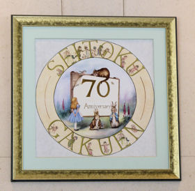 ずっと気になっていた聖徳大学で開催されている「ピーターラビットの世界」展に参加してきました。聖徳大学の場所はJR松戸駅より徒歩5分。念のためイベント主催の聖徳大学川並記念図書館の担当の方にお電話すると、「イトーヨーカドー方面に歩き、イトーヨーカドーがオープンしている時間帯ならエスカレーター等を利用して5Fまで、そして5Fに設けられている聖徳大学方面出口を出てすぐです」との事だったのですが、まさかビル5Fの出口とは、私の聞き間違いであろうと思っていたら、ちゃんとおっしゃる通りその場所にありました。 駅のすぐ近くにあるというのに、ビル5F分の高台にあるためなのか、大学の正門を抜けるとそこはつい先ほどまでの騒然とした雰囲気とは違い、もちろん学校という一種のピーンと張り詰めた空気がただようなか、粛然としたなんと良い環境のなかにあるのだろうというのが第一印象でした。 ![]() 写真は、大学の正門を抜けたすぐ大きな広場の先にある校舎。上空はなんともすがすがしい雲がふわりと浮かび、町の中にある大学とはとても思えない静かな雰囲気。 正門を抜けて左手にある建物の半地下部分に「ピーターラビット世界」展を開催しているギャラリーがありました。 ![]() 写真左は、ギャラリーのある建物入り口。入り口右手に、「ピーターラビット世界」展の案内表示がありました。 写真右は、建物入り口より入ったすぐ正面にある70周年記念プレート。ビアトリクス・ポターの作品の見返しにもある掲示板をイメージした部分に「70th Anniversary」とあり、そして『不思議の国のアリス』の主人公アリスと、チェシャ猫が、そしてピーターとベンジャミン、こまどりもいます。背景にはジギタリスの花々も。まっさきに目に飛び込んできたこの素敵な記念プレートにしばし見とれてしまいました。 ![]() 写真は、ギャラリーの入り口です。 (これより先は撮影禁止だったため、肝心のギャラリーの様子を撮影した写真はありません。ご了承ください。) この催しは、聖徳大学に平成20年春よりあらたに開設された児童学部・音楽学部を記念して、大学が所蔵している貴重なビアトリクス・ポターに関する資料を展示、広く一般にも公開されたというものです。 これら貴重な資料は、学校創設者である川並香順先生の意向で、「何事にも本物に接する」というポリシーのもと、子どもたちに大変人気のあるビアトリクス・ポターの作品の初版などの学術資料が集められ、これらを随時公開し、教育に役立ててこられたというこれまでの経緯があるそうです。 そんなギャラリーの展示スペースは、20人も入ればいっぱいになるほどでしたが、ちょうど訪れたのが3月中旬、折りしも卒業式がおこなわれていたというのもあってか、静かにゆっくりと鑑賞させていただくことができました。 まずは、これら公開するに当たっての先ほどのこれまでの経緯を含めた挨拶のボードに始まり、ビアトリクス・ポターの作品の初版本が展示されていました。これら初版本がただ展示されているのではなく、初版本の前には、これら物語の主役たちのフィギュア(ロイヤルドルトンの陶器製フィギュア)が一緒に並べて展示され、まるでそこから飛び出したかのように、私たちの目の中に飛び込んできました。 これら、ビアトリクス・ポターの23作品すべての初版本に、それぞれの主役たちがずらりと端から端まで展示されているのです。なるほど、子どもたちに大人気と書かれてあったとおり、子どもが見ても楽しめそうです。 なかには、ロイヤルドルトン社が製作していない『2ひきのわるいねずみのおはなし』に登場するルシンダとジェインについては、ボーダーファイン・アート社が製作したフィギュアを展示されていて、もうその勢ぞろいした圧巻さたるや、興奮と喜びが同時に湧き上がると表現すればいいのでしょうか。見終えた後は思わず「ごちそうさま」と言いたくなるぐらいの素晴らしさでした。 もう想像つきますよね。ギャラリー入り口から、それら23作品の展示を見終えるまでの間、どれほどの亀のような歩みだったかを。だって次になかなか進めないぐらいの見ごたえでしたから。 RJWのぬいぐるみ展示のところにいたっては、もう私たちにとって見慣れてしまった部分なので、そこは早かったこと。でもそこに、「世界で最初に翻訳された『ピーターラビットのおはなし』」というニュースとともに、それらが掲載された新聞記事のコピーが貼られていました。このような素晴らしい展示スペースに付け加えていただきうれしかったです。 またビアトリクス・ポター本人の直筆の手紙も展示されていました。 ・1940/4/22 ハンバー氏宛 木の伐採に関する内容の手紙 ・日付不明 Miss Hammonth宛 夫ヒーリスの病状を心配する内容の手紙 直筆の作品として、1936年、1938年に描いたクリスマスカードのデザイン画も。 手紙、クリスマスカードの展示された横には、そう手紙といえば切手ですよね。