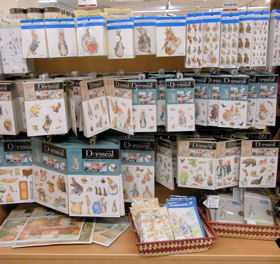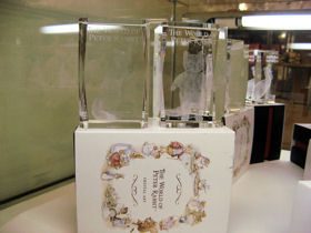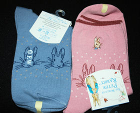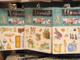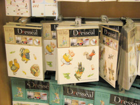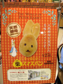そごう大宮店で開催されましたハッピークリスマスフェアに行ってきました。人気のキャラクターたちが勢ぞろいして、色とりどりに華やかな雰囲気のなか、ピーターラビット、スージー・ズー、ミッフィー、パディントン・ベア、スヌーピー&ウッドスティック、ウサビッチなどなど。 ![]() (写真左) そごう大宮店7階催事場に設置されたクリスマスツリー (写真右) オーナメントは、映画「ミス・ポター」公開記念グッズのフェルトのピーターラビットキーチェーンがぶらさがり、雲のようにふわふわして、ツリーにとても似合っていました。 ![]() (写真左) ツリーの下には、ピーターラビットの包み紙でラッピングされた大きなプレゼントもディスプレイされていました。 (写真右) その横には、ピーターラビットが誕生したきっかけが紹介されていました。 ![]() (写真) 実はこのツリーは見る角度により、それぞれのキャラクターに変化します。先程はピーターでしたが、角度を変えると、ミッフィー(写真左)が登場し、続いてスージー・スー(写真右)も。アイデア満載のツリーに驚きました。 ツリーの向こう側に、ジャンボピーターが番頭さんのように座っているのが見えますでしょうか?そこには、ハッピークリスマスフェアで話題となった、イベント限定「栗スマスパン」がワゴンに1日100個限定で販売されていました。 ![]() (写真左) ジャンボピーターの横に、ピーターラビットの栗スマスパンのワゴンが。 (写真右) ワゴンの中には、ピーターラビット?の栗がつまったパンがたくさん並んでいました。 何でも、このイベントのために誕生したもので、パン生地は天然酵母を使用し、また黒糖を仕込むことで濃くと風味を醸し出し、パンのなかには栗がぎっしりとつまった栗餡が自慢だとか。お店の方に「オススメ!!」と太鼓判を押され、気づけば「栗スマスパン」が買い物カゴの中へピョーンと入ってました。 ![]() (写真左) 袋から栗スマスパンを取り出すと、愛嬌のあるお顔に思わず笑みがこぼれます。 (写真右) 栗餡のなかに栗がたっぷり入ってました。次の日に召し上がる時は少し温めたほうがさらにおいしく召し上がれると思います。 ![]() (写真左) ジャンボピーターが、栗スマスパンの応援団長のようですね! (写真右) この愛らしい看板が目印でした このイベント限定パンを制作なさったのは、あこ天然酵母のパン「あこべる」。 ピーターラビットグッズコーナー ![]() (写真左) この垂れ幕の下がピーターラビットコーナー。 (写真右) 文房具、タオル、ぬいぐるみなど陳列されたこの一角と、その隣の棚もピーター。 ![]() ピーターのクリスタルシリーズも販売されていました。クリスタル収納箱のケースが、こんなにおしゃれだったとは、、、実はクリスタルに見入ってるのではなく、ケースのデザインが素敵でした。 ![]() (写真左) シール&タイルデコシールシリーズがこんなにいっぱい。シールコーナーの全景。 (写真右) シールコーナー全景写真の右上から3段目、ピーターラビット・タイルデコ アレンジシリーズ3種類。 こんなマニアックな柄いいのかしら?と小躍りしたくなるような、『「ジンジャーとピクルズや」のおはなし』や、『カルアシ・チミーのおはなし』、『アプリイ・ダプリイのわらべうた』に登場するキャラや、小物(マグカップやポット、バスケット)類なども。草花だけを集めたものなど。 ![]() (写真) こちらは、サイズがひと回り大きく、物語の背景となるタイルデコシール。 これでアレンジすれば、お部屋のあちこちがおはなしの世界へと通じる入口となります。 ![]() (写真左) シールコーナー全景写真の左上から3段目、 ドアや机を集めたシールや、『カルアシ・チミーのおはなし』、『「ジンジャーとピクルズや」のおはなし』、『アプリイ・ダプリイのわらべうた』から集めたもの、『ピーターラビットのおはなし』、『ベンジャミン バニーのおはなし』を集めたもの。 ![]() (写真) シールコーナー全景写真の真ん中より2段目、ピーターいろいろ。『キツネどんのおはなし』からも。 こんなにたくさんの種類が増えたら、まずはどれからにしましょうと悩むこと、悩むこと。結局、一度では決まらず、ランチを食べた後に再び舞い戻って悩みました。 ![]() (写真) ソックスもこんなにたくさん種類が増えていましたよ。一番人気は、ピーターの顔シルエットソックス。水色シルエットが真っ先になくなっていました。 ![]() (写真左) 「ピーターラビット 冬のおはなし(仕掛け絵本)」 大日本絵画(刊) 2009年10月 ピーターとベンジャミンが雪が降るなか、薪を拾いに行く途中で、チュウチュウおくさんの子供たちを救う冒険物語。(『キツネどんのおはなし』をベースに創作されたもの)。最後のページに雪化粧した大きなモミの木が飛び出し、各ページのポケットに入っている雪の結晶をレイアウトできるという仕掛けも。 (写真右) ピーターラビットプレミアムシール。 このイベント開催中、商品代金の合計(