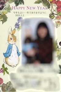 年賀状は、まかせてキレイのフジカラーより、2011年年賀状のピーターラビットデザインが発表になりました。デラックスタイプ、スタンダードタイプ、特選絵柄タイプと、それぞれ2種類のデザインより選択できました。