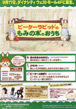 最寄駅のJR鴨宮駅よりバスで5分ほどのところにある、ダイナシティウェストモール4Fに「ピーターラビットのもみの木のおうち」が9月17日登場しました。
