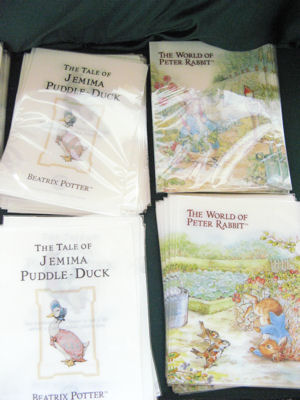「ビアトリクス・ポター展」の会場にて販売されていたピーターラビットグッズ ![]() 郡山市立美術館のギャラリー入り口と出口の間にある通路に、「ビアトリクス・ポター展」開催期間中の限定ショップがオープンしていました。向かって右側がピーターラビットグッズ、左側は同じ福島県内にあるブリティッシュ・ヒルズのグッズです。 ![]() ブリティッシュヒルズでは、「ビアトリクス・ポター展」開催期間中、郡山市立美術館の半券があれば入場料無料というキャンペーンも展開されています。 では販売されていたグッズを何点かご紹介します。 ![]() (写真左) 「ビアトリクス・ポター展」のレポートでもご紹介した原画展の図録 (写真右) 原画展に出品されている作品のポストカード ![]() (写真左) オーガニックコットンのオーガビッツ製品 ピーターラビットTシャツ(表面) (写真右) Tシャツの裏面にもピーターがプリントされています。 「ビアトリクス・ポター展」のレポートにも書きましたが、このTシャツを美術館のスタッフの方が着用されていました。 オーガニックコットンの「オーガビッツ」のサイト ![]() イベント限定のクリアファイル各種 A5サイズ ![]() このクリアファイルの内、2種類のみ葉柄のシルエット入り。 ↑裏面にはシルエット柄 ![]() (写真左) クリスタル製品 こちらは角をカットして丸くなっているタイプのもの。 (写真右) ピーターラビットビンズ(左側)と、ピーターラビットメタルチャーム ![]() ピーターラビットカレンダー2011 2010年9月24日発売予定 メディアファクトリー(刊) 原画展に合わせて先行発売されたカレンダー。カレンダーの各月の絵柄は写真左をご覧ください。 その他にも、ヂャンティさんのデコパージュや、クリスタル製品のストラップ、クリエティブヨーコのイングリシュ・ガーデンシリーズや、ゴブランのバッグ、優美社のエコバック類などがありました。 ●「ビアトリクス・ポター展」についてのイベントレポート ↑ ビアトリクス・ポターが描いた原画を展示する「ビアトリクス・ポター展」のレポートもよろしかったらご覧ください。 (2010.8.19 レポート 作成: ラピータ ラピータの部屋コンテンツ) |