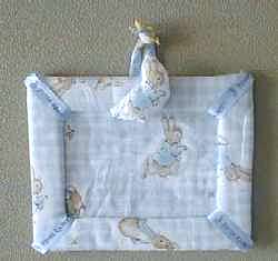 ダンボールで作った写真立て アクセントのリボンもピーターで仕上げました。