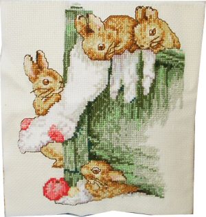 ▲刺繍作品 <クリスマスの靴下をのぞくウサギたち> なおさんの作品