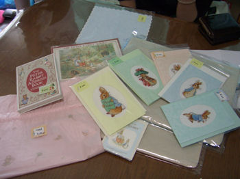 フリマお茶会の参加ルールは、ピーターラビットグッズを3点以上出品してくださる方というものでした。このお茶会参加者全員が、ピーターグッズを持ち寄って、欲しいものをゲットしてまた持ち帰ります。ピーターグッズであれば、手作り品だったり、買ったけどやっぱり使わないというものだったり、買ったことを忘れてまた買ってしまっただぶりものだったりします。