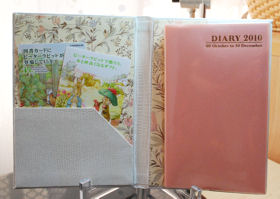 私はなんと運がいいことに、なっつさん手作りの手帳カバーをゲットすることができました。100円ショップで購入していた手帳がぴったりとおさまるサイズなんですよ。それに便利なポケット付きです。