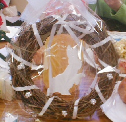 ももさんが手作りしてくださった「クリスマスリース」と、なっつさんが手作りしてくださったオーナメント