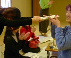 赤い大きな包み紙には、ワイングラスが入ってます。 プレゼント授与式(^^)