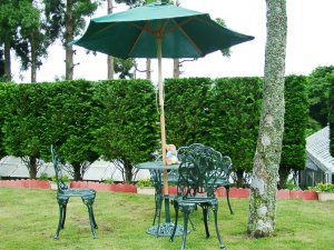 「ピーターラビットガーデン」のあるホテル内庭は、芦ノ湖方面から居心地の良い風が吹きぬけるちょっとした憩いのスペース。お天気さえよければ、緑とピーターで目が癒され、気持の良い風で癒されることでしょう。
