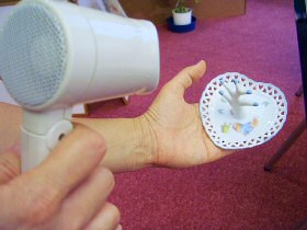 8月7日(月曜日)、8月22日(火曜日)の両日に、参加型イベントが開催されました。 10:00〜 リングツリー教室 14:00〜 ペンダントヘッド作り教室 ![]() (デコパージュ教室の見本作品の写真は、なっつ先生よりお借りいたしました。2006.7.24写真差し替え) デコパージュ教室を実際に体験 ![]() このような真っ白の素材に、色を塗ってアクセントをつけます。 ![]() プリントの位置決めが一番難しかった。かなり真剣に「あーでもない、こーでもない」と悩みました。 位置が決まったら、コーティング剤を塗り、乾かす。これを何度か繰り返して艶をだします。 ![]() 〜できあがり〜 所要時間は、1時間ほどでしたでしょうか。いつもはなっつさんの素敵な作品を見るばかりでしたが、自分で作るのも楽しい作業でした。