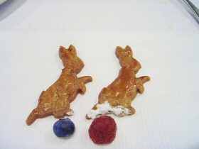 ![]() ラベンダー入りパウンドケーキと紅茶プリン 黒いちごのホットパイ(↓)とチョコレートムース ホットパイは、焼きたてで、中から甘く味が染み込んだブラックベリーやりんごなどが。 ![]() ![]() キャロットケーキとフルーツゼリー デザートについてくるピータークッキー(シナモン味) (2006.7.23 キャロットケーキと、シナモンピータークッキーの写真2点追加) デザートについてくるシナモンクッキーは、食べる前にナプキンに広げて、こんな楽しい遊びをしましょう。 ![]() 今回は頼んだ2品のどちらもベンジャミン・バニーのクッキーがついてきたので、帽子の上に木いちごを乗せれば、ベンジャミン・バニーの完成。食べるのがもったいないぐらいのクッキーなんですよ。でも食べるとサクサクで、ポリッポリッとおいしいのです。 (2006.8.8追記) ●●ピーターラビットディナー ![]() オードブル「にしんのマリネ カクテルソース添え」 にしんがさっぱりとして、さらにカクテルソースの濃厚な味がMIXされ、思わず白ワインを頼みたくなるそんなオードブルでした。 ![]() スープ「冷たい人参クリームスープ」 もしくは「あたたかい野菜スープ」のどちらかをチョイス 冷たい人参クリームスープは、ピーターラビットランチのスープについているもの。ひんやりとして、のど越しがよく、とってもおいしい。 野菜スープは、野菜の旨みが凝縮された、あっさりコンソメスープ ![]() 魚料理「魚貝のキャベツ包み マヨネーズソース」 ほたて、ムール貝、オマール海老が、キャベツの葉に包まれていて、マッシュポテトのようなクリーミーなマヨネーズソースとの相性が抜群!ひと口ほおばるたびに、幸せな気分にひたれます。 ![]() 肉料理「フィレ肉の網焼き グリーンペッパーソース」 ミディアム仕上げ 魚料理の次は、肉料理が登場。フィレ肉はとても柔らかく、口にいれるといつの間にかなくなってしまう。グリーンペッパーという丸いグリーンの粒と一緒にいただくと、おいしさが口いっぱいに広がっていく。 ![]() デザート「ラベンダー入りパウンドケーキと紅茶プリン」 ここでようやくピーター型クッキーが登場しました。 ピーターラビットディナーコースは、以上のメニューに、ライスorパンと、サラダ、コーヒーor紅茶がついて、5250円。ピーターラビットディナーは、パレスホテル箱根でしか味わえない絶品料理の数々でした。 (ピーターラビットディナー 2006.8.11追記)