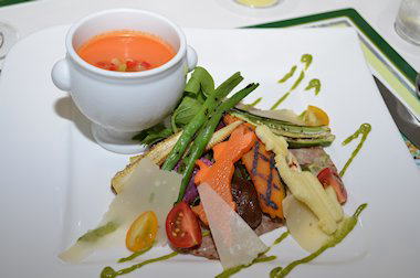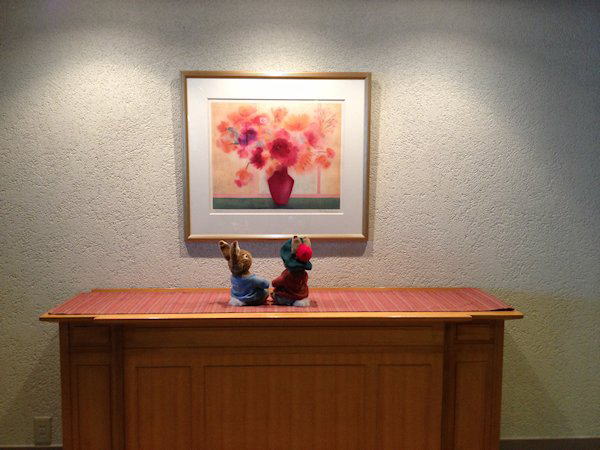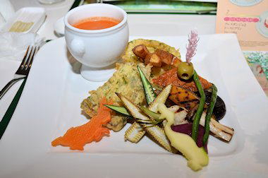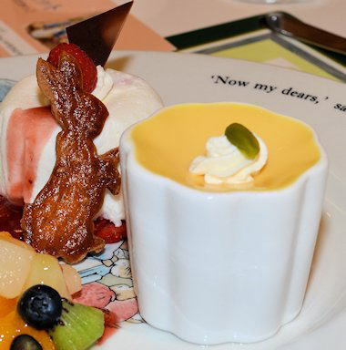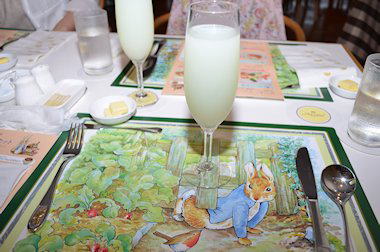 箱根でピーターラビットに会えるイベント「ピーターラビットフェア」も、1999年夏に初めて開催されてから、毎年夏の恒例イベントとして10数年。昨年からは一年通して楽しめるイベントとなりました。そんなピーターラビットのイベントに、今年も参加させていただくことができましたのでご報告します。 ●パレスホテル箱根のフロントロビー ピーターラビットとベンジャミン・バニーが、ロビーに展示された絵画の鑑賞をしています。ホテル正面玄関や、いたるところにピーターラビットがディスプレイされている訳ではありませんが、さりげない演出に惹かれます。 ![]() ●ピーターラビット宿泊プラン 一日3室限定のピーターラビット宿泊プランの室内の様子。お部屋の様子の写真は、昨年撮影させていただいたものです。 ![]() 「ピーターラビットフェア2013」の宿泊プランは、プラン特典のおみやげは用意されていない分、宿泊料金が例年よりお得になっています。 箱根景観保護活動の一環として、ピーターラビット宿泊プランの利用料金の一部が寄付されるのは今年も実施されます。美しい自然があるからこそ、またそこに行きたいと思えるのですから、今後もずっと続けてもらえたら嬉しいですね。 ●ピーターラビットプレートセット(ピーターラビットをテーマとしたお料理) ピーターラビットをテーマにしたお料理「ピーターラビットプレートセット」は、今年のフェアからピーターラビットプラン限定料理ではなく、プランを利用しなくてもメニューで選択できるようになりました。 ディナーメニューで設定されているので、価格は4500円となりますが、プレート料理、スイーツ、カクテルより、それぞれ1種ずつ選ぶことができる豪華なメニューです。 ![]() 6月1日から8月31日までのメニュー。夏野菜をたっぷりと使ったメニューが3種類、スープとパンもしくはライス付き。スイーツは2種類、紅茶またはコーヒー付き。さらにカクテルはアルコール入りか、ノンアルコールのそれぞれ2種類の中より1つ選べます。 ![]() こちらはノンアルコールカクテル、「フロプシーの淡い想い」 ライムジュースとカルピスソーダのブレンドで、さっぱりした飲み口でした。 プレート料理 ![]() 「ピーターも大好き!フィッシュ&チップス」 「ジョニーのごちそう! 仔牛ロースのグリエ」 ![]() 「フロプシー、モプシー、カトンテールもお手伝い! 夏野菜の盛り合わせ」 フィッシュ&チップスの付け合わせに、 イングランドの家庭料理 ヨークシャープディングに、生ハムがサンドされたプティサンドウィッチ。 ![]() 夏野菜の盛り合わせの付け合わせに、 涼しげなガラスの器に盛られた自家製ピクルス。さっぱりといただけます。 仔牛のロースのグリエの付け合わせに、 カルパッチョ風フレッシュサラダがたっぷりと、さらにスライスしたパルメザンチーズが添えられています。 ![]() お料理を盛りつけるのにちょうどぴったりサイズのプレートですが、このサイズにピーターラビット柄がないため、プレートは別のものを使用されています。でもその代わり、シェフが毎回作るのに苦心されているとお聞きした、ピーターラビットとジマイマが野菜の森の中からひょっこりと顔を出して、私達を楽しませてくれます。 何でもジマイマは首がとっても細いので、特に大変だとか。。。私達はそんなこととは露知らず、でもピーターやジマイマを食べるなんて出来ないねと言いながら、最後にはパクリといただいてしまいますけれどもね。 スイーツ ![]() 「ベンジャミンがつまみ食い! 「ミセス ラビットの力作! サバリンバナナとピーチコンポートゼリー」 クレメダンジュとトーストプリン」 スイーツはピーターラビット柄のプレートに、季節のフルーツが添えられ、見た目だけで美味しさが口いっぱいに広がります。 クリームたっぷりのサバリンで、もうお腹いっぱい何も入らないと思っていても、ピーチコンポートゼリーが口の中でとろけてさっぱりといただけます。見た目も爽やかなゼリー、ベンジャミンがつまみ食いするのもうなづけます。 ![]() フワフワのクレメダンジュはお腹いっぱいでも口どけが楽しくてついつい口に運んでしまいます。見た目も鮮やかなトーストプリンは、昔懐かしいプリンの味、卵が濃厚で固さもあり、とっても美味しかった〜。 ●1Fロビー横の売店にて、ピーターラビットグッズ販売。 ![]() ピーターラビットグッズも売店にて取り扱いされています。 新商品の文具が色々と、ノートブックメモ、クリアファイル、昨年見つけたウィンドウワッペンもありました。 ![]() どこにでも貼れてきれいに剥がせるドレッシルのピーターラビットシリーズも揃っていましたし、限定のスタンプセットもありました。その他には、ぬいぐるみ、マグカップ、水筒など。新柄のバラとピーターのビニールコーティングバックもあり、お稽古バックとして実用的でなおかつ可愛いかったです。 折しも富士山が世界文化遺産に登録