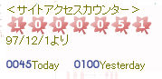 ![]() WEBサイト開設15周年を迎えるこの年に、カウンターが100万を突破しました。友人に 「更新しなくてもいいから、そこにあり続けることが大事。ひと時ネットを離れた方々も思い出して戻れる場所がなくなっていたら寂しい」っていう言葉に甘えて、そして励まされなんとか続けることができました。 |
