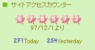 1年で4万カウント突破しました。 最初は自己満足のホームページだったのですが、 見てくださる方があってこそ、ホームページなのかなと思うように気持ちが変化していきました。 |