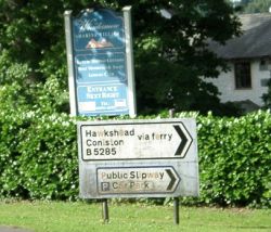 | のんびりと草を食べている羊の姿はたくさん見かけるけれど、うさぎは姿を現してくれない。「うさぎはどこに行ったら会えるの?」とスティーブに聞いたら、「うさぎなんていたるところにいるさ。でも早起きしないと見れないよ。昼間は穴の中にもぐってるからね」と教えてくれた。 そこで今日は早起きしてうさぎを見るぞーと思ったけれど、朝食は8時からなので朝食を食べた後出発。 ![]() ボウネス桟橋のフェリー乗り場に向う道沿いのコテージにつけられていた「うさぎの飾り物」を発見!なんて幸先がいいんだろうと、ほくほくとフェリー乗り場に向った。 ウィンダミア レイク・クルーズ(Windermere Lake Cruises) ボウネス桟橋(Bowness Pier)乗り場No.3 〜 フェリーハウス(Ferry House) 4月7日〜10月28日まで毎日出航 1日往復1便ずつ ヒルトップ、ホークスヘッドに行かれる方は、こちらのフェリーを利用 行き(フェリーハウスまで):10時出航 帰り(ボウネス桟橋まで):17時出航 大人片道 2.50ポンド フェリーハウスから徒歩でヒルトップまで2マイル (約3.2キロ) フェリー乗り場には、ホテルから徒歩で10分ぐらい。 フェリー乗り場のお兄さんに、「ファーソーリー行きの切符ください」と伝えたら、「船は10時出港だよ。どこ行くの?」って聞かれた。 私が「テンオクロックー!!!」なんですと、1時間以上もここで待てってかー!「アンビリーバブル」って顔しながら「ヒルトップに行きたい」って伝えた。 お兄さんは笑みを浮かべながら、そんなに急いでるんだったら、カーフェリー利用するといいよと教えてくれた。そして「目の前の道路をまっすぐ行って、1キロ先を右に曲がるんだよ」と。 「Thank You!」と言って、目の前の道路を、1キロね。普段まったく歩かないので1キロって言われてもどれぐらいかかるのか想像できない私は、ここから1キロも歩くのかぁと思うと。。。(絶句) ボウネス桟橋のフェリー乗り場からカーフェリー乗り場までの行き方。。 地図参照 赤矢印で記載しています。 しょうがない、歩きましょうってとぼとぼ歩き出した。 何分かかるんだろうって思いながら歩くこと5分、道路は道なりにカーブしていてどんどん湖から離れていき、遠回りするような感覚にとらわれる。 もしかして湖のそばの道を通った方が近道かもと、なんとか少しでも歩く距離を減らそうといけない考えがよぎる。 それがあとで大きな間違いになるとも知らずに、道路脇の駐車場の先にある細いわき道へと入っていった。 その細いわき道は、一見正解だったように感じた。 ウィンダミア湖の姿も近づいてきたし、このまままっすぐつっきれば、カーフェリー乗り場はすぐそこなんじゃないかなぁーなんて思いながら歩いていた。 が、突然目の前に門があって、「勝手に入ってもいいのかな」とか思いながらその門をくぐって先に進もうと思ったら、そこは誰かの家だった。 道を聞こうにもまわりには誰もいない。このまま進んでいいものかどうかちょっと悩んだけれど、他人の家の庭を勝手にうろうろして怒られたらまずいと思って引き返した。 また来た道を戻るのもしゃくなので、その前後にまっすぐ行ける道を探して、また歩いていったら今度はキャンピング場に着いてしまった。 キャンピング場から湖に抜ける道はないものかと思って探したけれど、見渡す限りキャンピングカーがずらりと並んでいてすごく広い。その先を歩いて行って もし間違えていたらまた引き返さなきゃ行けない。誰かに道を聞こうにも、朝早いからなのか、しーんと静まり返ったキャンピング場にはまだ誰も起きていない。 あーあどうしようと途方にくれて、リュックから地図を引っ張り出そうとリュックを下に降ろした瞬間だった。 「ガサッ」って草むらから音がして、うさぎがひょっこり現れた。「えっ、えー」もうびっくり。あわててカメラ、カメラとがさごそさせたらすっと草むらの中に隠れてしまった。 「あーん、待ってよぉー」って隠れた草むらの中をのぞこうと思った瞬間、車が一台やってきて、キャンピング場の反対側にある駐車場に止まった。 すごく広い駐車場で、まだ1台も車止まっていないのに、その車は何故か私のすぐそばに止めて、中から荷物をごそごそ出し始めた。 道を聞くなら今だ!今しかないってあわてて、「エクスキューズミィ」って、大声あげながら走った。 老夫婦は、道一本へだてた木陰の中から私が飛び出してきてびっくりしたような顔したけれど、親切に道を教えてくれた。 その時、あのうさぎが助けてくれたんだ。もしかしてあのうさぎはベンちゃんかもしれないってそう思った。私のこと心配で様子見に来てくれたのかなって。そんなことある訳ないけど、でも私はすごくうれしかった。 気を取り直して、教えてくれた道に戻ったら、なんてことはない先ほどフェリー乗り場のお兄さんが教えてくれた道に舞い戻った(^^;) 近道しようと思ったのが、かえって遠回りしただけに終わったみたい。トホホ。 ![]() (写真説