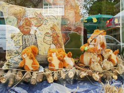 ▼グラスミア グラスミア湖の駐車場からグラスミア湖まで、ロセィ川(River Rothay)沿いの遊歩道のようなフットパスを2、3分ほど歩いた先に、グラスミア湖が姿を現します。が、ぐったりと身動きできない私は、ロセィ川のベンチでひとり休憩させてもらうことにした。その間、友人たちには食事してくることとなり、しばし分かれる。 ![]() @LORRAINE at Pictures of England. com (写真) グラスミア湖にそそぎこむロセィ川沿いにあるベンチ。 写真撮影もできないほど意気消沈していたので、非営利目的使用可能サイトよりお借りしたイメージ写真。 目の前になんとも涼しげな音色を立てる小川があり、少し歩くとあの美しいグラスミア湖が眺められるとわかっていても、上半身を起こすこともままならず、突っ伏したままベンチにひたすら座り、気分が良くなるのを待つ。なんとなく頭上に気配を感じ、顔を見上げるがなにもいない。気のせいと思って下を向くと、また気配が。 そう、それはなんともすばっしこい灰色リスだった。頭上で繰り広げられるサーカスのような機敏な動きにあっけにとられて見とれていたら、少しずつ気分がよくなり、再び動けるぐらいにまで回復。灰色リス、カルアシ・チミーの魔法にかけられたかのよう。 ほどなく友人も戻ってきて、一緒にグラスミアのピーターラビット アンド フレンズへ。 ▼グラスミアのピーターラビット アンド フレンズ Peter Rabbit and Friends、GRASMERE ![]() (写真左)ストック通り(STOCK LANE)沿いに突き出ていた看板 (写真右)テイクアウトショップのカフェコーナーがショップの手前にあり、奥まったところにショップの正面入口 ![]() (写真左)ウィンドウ・ディスプレイは、オールナトキン! (写真右)小枝で作ったいかだに乗って、ふくろうじまへ出発! ピーターラビット アンド フレンズも、前日から合わせ、これで4軒目。なのに、ディスプレイの内容はこれまで見たどの店ともまた雰囲気が違い、手作り感たっぷり、ほのぼのしていて、思わず歓声をあげる。「いっきに元気になるとは、こういうこと!」と、店内に足を踏み入れた。 店内のグッズも、これまた同じ店なのにどうしてこんなにも違うグッズが見つかるの?と、発見の連続。うれしかったのは、アメリカで発売になり、日本では輸入雑貨のお店でしか取り扱っていなかった紙バッグ。その当時、紙バッグなのに値段が高くて買えなかったのに、英国で再び出会えたこと。もちろん、今回はためらいもなく購入することができた。 なんとか元気を取り戻したかに見えたけど、再び車に乗り込み、ケズウィックに向かう道中でまた車酔いをぶりかえし、「もうだめ!」と思った瞬間、ケズウィックに無事到着した。 |