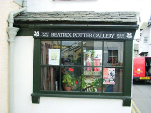 ▼Breakfast ケズウィックパークホテルの朝食 ![]() 目玉焼き、ベークドトマト、ハッシュドポテト、ソーセージ、ジュース、食パン このホテルの朝食は、イングリッシュBreakfastでありながら、とってもシンプルで量も少なめ。撮影するには物足りないけど、お腹のことを考えるとこれぐらいの量がちょうど良い。 ▼ビアトリクス・ポター・ギャラリー Beatrix Potter Gallery in Hawkshead 最初に立てた旅行計画では、旅行2日目に訪れる予定だったビアトリクス・ポター・ギャラリー。既にポター・ギャラリーのあるホークスヘッドを離れ、ケズウィックに移動した後だったけれども、友人の「なんぼでも運転しまっせ」の頼もしいひと言で、再びホークスヘッドに向けて出発。 ![]() (写真左) ビアトリクス・ポター・ギャラリーの入口がオープンになっていることに感激。 (写真右) ギャラリー入口の反対側より撮影。ガラス窓越しに見えるゼラニウムを今度は(↓)中から撮影。 ![]() (写真左) ギャラリー入口の反対側のガラス窓のある部分には、ピーター人形が展示。 (写真右) ピーター人形の横には、ヒルトップ・ハウスにもあったゼラニウムの鉢が展示されていた。 2回の英国旅行で、同じ場所に4度もやって来て、始めてオープンされた入口を見た。ドアが開いているだけで、「やっとなかに入れる」と、緊張と震えでゾクゾクし、思わず頬をひねりたくなるそんな気分。人一人がやっと通れる入口を抜けると、右手に受付のカウンターがあり、入口正面にはガラス窓で、ピーター人形がお出迎え。 また、1987年11月から1988年1月にテート・ギャラリー(The Tate Gallery)にて「ビアトリクス・ポター展」が開催された時に制作されたポストカードが4点あり、コイン入れに1点につき50ペンス(0.5ポンド)と明記され、「コインを入れ、ご自由にお持ちください」と書かれていた。以下が、その時に50ペンスで購入したポストカード。 ![]() (ポストカード左)「A sketch from the shore at Derwent Bay」 (ポストカード右)「A view of the Newland Valley」 ![]() (ポストカード左) 「Amanita muscaria (Fly Agaric) with polypody fern and lichen」 (ポストカード右) 「Two squirrels on a log」 ![]() こちらのポストカードは、ギャラリーで販売してたもの。 「The solicitor's office, formerly the offices of William Heelis」 0.99ポンド この建物は、ビアトリクス・ポターの夫ウィリアム・ヒーリスが弁護士事務所として使用していた場所。1988年、ナショナル・トラストが博物館兼ギャラリーとして整備し、一般公開された。 ギャラリーの受付で入場を済ませ中に入ると、左手にポストカードのような事務室がそのまま保存されていた。それほど広くない事務室のすぐ脇には、2階へと通じる階段があり、階段を登りきった先はポター・ギャラリーとなっている。階段下の踊り場には、ビアトリクスが所有していたハードウィック種の羊が、コンテストで賞を受賞した際のトロフィーが展示されてた。 ![]() (写真左) ビアトリクス・ポター・ギャラリーのガイドブック 2.75ポンド (写真右) 希望すれば、ガイドブックの表紙の裏に、ギャラリーの建物を模したオリジナルスタンプを捺印してくれる。 「ビアトリクス・ポター・ギャラリー」(Beatrix Potter Gallery) 入場料 大人 3ポンド 「ビアトリクス・ポター・ギャラリー」営業日&時間: 日〜木曜 10:30〜16:30 金・土曜 クローズ 住所:Main Street, Hawkshead, Ambleside, Cubria LA22 0NS 主な行き方: ヒルトップよりホークスヘッド行きのバス(Bowness to Hill Top & Hawkshead Service 525) 約8分 ウィンダミア駅よりホークスヘッド行きのバス(To Coniston & Hawkshead Service 505/506) 約35分 駐車場:ホークスヘッドのインフォメーションセンター近くに駐車場あり ![]() 「ビアトリクス・ポター・ギャラリー」の入場チケット 2Fギャラリーは、小部屋が2つと、階段の踊り場で仕切られた左右それぞれ2箇所、計4箇所にビアトリクス・ポターのオリジナル作品(原画)が展示されている。 これらの作品は、すべて水彩画であるため、博物館並みの厳しい条件で管理され、500点の原画の内、展示されるのはごく一部で、毎年そのテーマにあわせ、展示される作品が替わっていく。一度行ったことがある人でも、年度が変わればまた違う作品が展示されているという事。そのため、これらの作品を全部見るためには何年通わなくてはいけないのだろうか。。。。 以下は、私が原画を見て、新たに感じたことをいろいろと。 『ひげのサムエルのおはなし』 原画で見るサムエルは、眼光が鋭く、おはなしから伝わってくるサムエルの怖さは、この目の迫力にあったのかと改めて感じる。 色の伝わり方に関して、原画の方がよりダイレクトに伝わってくる。サムエルは、怖ろしい存在のはずなのに、黄色のチョッキ、辛し色のズボン、モス・グリーンの上着など、着用しているものは、とても上品な色合いで素敵。 『モペットちゃんのおはなし』 原画で見るモペットちゃんは、毛並みが素晴らしいことと、大きな瞳のなかに細くて垂直な瞳孔、この眼の