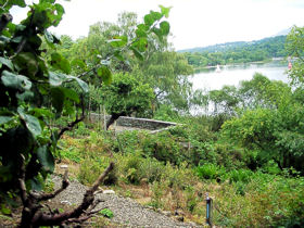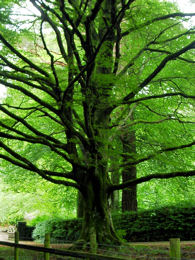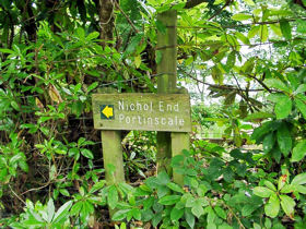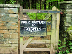 ▼ダーウェント湖 Derwentwater カークヴィー・ロンズデールより、再びケズウィック方面へ車を走らせ、ダーウェント湖を挟んでケズウィックとは反対側となるダーウェント湖の西側に到着。 ![]() (写真左) ダーウェント湖の西側より、ダーウェント湖を望む (写真右) ダーウェント湖を周回しているケズウィック・ランチ(写真正面奥の汽船)。手前は、「ニコル・エンド(Nichol End)」というケズウィック・ランチの船着場で、ヨットハーバー。 前回2001年の英国の旅は、一日ミニバスツアー内でダーウェント湖を訪れ、ケズウィック・ランチ(汽船)でダーウェント湖周遊を果たせたものの、湖の西側にも立ち寄りるのはかなわぬ夢だった。そこで、今回の旅でどうしても実現させたかった。 ダーウェント湖の西側にはどんな舞台があるかというと。。。 ▼フォウ・パーク邸とリングホーム邸 湖の西側に面したここには、フォウ・パーク(Fawe Park)邸と、リングホーム(Lingholm)邸という、それぞれが広大な敷地を持つ屋敷があり、フォウ・パーク邸は、『ベンジャミン バニーのおはなし』の舞台となったところ、リング・ホーム邸は、『りすのナトキンのおはなし』の舞台になったところ。現在はどちらの屋敷も立入禁止で、絵本の舞台を確かめることは不可能だが、少しでもその舞台に近づきたくて。 ![]() (写真左) ニコル・エンドにあるマリーナ (写真右) マリーナの建物の脇にフットパスがあり、フォウ・パーク邸、リングホーム邸へと通じている。この標識は、フットパスの途中にあるニコル・エンドに戻る方角を示したもの。 ![]() (写真左) ニコル・エンドからフットパスを歩いてすぐにフォウ・パーク邸へ通じるゲートが見えてくる。 (写真左) 「フォウ・パーク(Fawe Park)」の表札をアップ フォウ・パーク邸は、このゲートより入って、(あくまで想像ですが)少し小高い丘の上に屋敷があるのか、ゲートからは何も確認することができず。こんなところでウロウロしていたら怪しまれるのですぐに退散。 ![]() (写真左) 道路側に面した側より見つけたリングホーム(Lingholm)邸を示す看板。 (写真右) プライベート道路と示された小さな看板が左手にあったため、この道はこれ以上進めずじまい。 ![]() (写真左) どんなに私有地で囲まれた場所でも、必ず通り抜ける道がある、それがフットパス。リングホーム邸の近くをウロウロしていると、再びフットパスの標識を発見し、ニコル・エンドへと通じるフットパスにつながっていた。 (写真右) フットパスの標識から少し進んだところ。フォウ・パーク邸からリングホーム邸に抜けるフットパスは、『りすのナトキンのおはなし』に描かれたような林のなかを抜ける道になっていた。 ![]() (写真左)フットパスの林を抜けると、湖水地方独特のスレートの石垣が目の前にあらわれた。これは、リングホーム邸の石垣。ポターが『ベンジャミン バニーのおはなし』で描いた石垣は、フォウ・パーク邸の石垣で、この石垣ではないと分かっていても、ベンジャミン・バニー氏が歩いた石垣によく似ている?! (写真右)リングホーム邸の石垣の合間からダーウェント湖を望む。 ![]() 『ベンジャミン バニーのおはなし』より ビアトリクス・ポター(著) いしいももこ(訳) 福音館書店(刊) ベンジャミン・バニー氏が石垣の上より登場するシーン。 ●「Visit Cumbria」サイト内の「Beatrix's Potter Derwentwater」の紹介ページのなかで、 Although Fawe Park and Lingholm are not open to the public, they may be glimpsed from the footpath between Nichol End and Hawes End (both of which are launch stops on the Keswick Launch). (サイトより一部引用) フォウ・パーク邸とリングホーム邸のどちらも公開されていませんが、ニコル・エンドとハウズ・エンドの間のフットパスよりちらっと見えるかもしれません。(ニコル・エンド、ハウズ・エンドのどちらもケズウィック・ランチ(汽船)で行くことができます) 「Visit Cumbria」の紹介文に書かれていたとおり、リングホーム邸の石垣の合間からちらっと見えたダーウェント湖と庭の一部、それから建物もほんの一部分だけ。 ![]() (写真左) リングホーム邸の屋敷の一部。フットパスの合間より見えた景色。 (写真右) ビアトリクス・ポターが1898年に描いた「Rain」と題された雨にけむるリングホーム邸を描いた水彩画の作品。 ニコル・エンドとハウズ・エンドの間のフットパスに広がる林のなかは、赤リスや森に住む動物たちの住みかとなっていて、大きくて立派な木が枝葉を押し広げていた。もしかしたら赤リスの姿が見られるかもと、上ばかり見て歩いていましたが、とうとう出会えずじまい。 さらにダーウェント湖の西側をハウズ・エンドの方角に南下し、リングホーム邸のエントランスが見えてきたら、今度はキャット・ベルズ山(Cat Bells 標高451m)へと続くフットパスの入口へと続いていく。 ![]() (写真左) キャット・ベルズ山へと続くフットパスの入口 (写真右) フットパスの柵の隣に、枝葉を押し広げた大木が。赤リスはいないかしらと