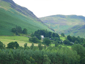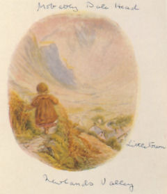 ▼リトル・タウン Little Town 「いなかの ある農家にルーシーというおんなの子がいました。」 『ティギーおばさんのおはなし』より ビアトリクス・ポター(著) いしいももこ(訳) 福音館書店(刊) 日本語訳では、このように翻訳されている部分、原文は以下の通り。 「Once upon a time there was a little girl called Lucie, who lived at a farm called Little-town.」 「The Tale of Mrs. Tiggy-winkle」より Beatrix Potter(著) Frederick Warne(刊) 日本語訳で「ある農家」となっている部分は、原文で「リトルタウン(Little-town)と呼ばれる農場」と書かれている。つまり、日本語訳はリトルタウンという町の名前が省略され、より読者に分かりやすい表現を選択されたということだろう。 リトルタウンは、ダーウェント湖の西側、キャット・ベルズ山を含むニューランズ渓谷(Newlands Valley)にある小さな町。全部で10軒もあるかないかの集落で、町の端から端まで徒歩で10分も歩けば集落から抜け出るほどの距離しかない。原文に記載があった通り、ここリトルタウンが『ティギーおばさんのおはなし』の舞台のひとつ。 ![]() (写真左) ニューランズ渓谷の中腹に白い建物がポツリと見える場所がリトルタウン。 (写真左) リトルタウンから見るダーウェント高原(Derwent Fells)の景色。なだらかな丘が連なる美しい牧草地帯のなかを生け垣(Hedge)が緑の線を描き、その先にそびえる尖った山は、コーズィー山(Causey Peak 標高637m)。 ![]() (写真) 山の斜面は一面ヒースでおおわれ、山肌が紫色に染まる。リトルタウンから眺める見事なまでの色のコントラストに、一同しばらくの間言葉を失う。 ![]() (写真) リトルタウン・ファーム(Littletown Farm)の看板。看板に描かれているのは、もちろんティギーおばさん、そしてルーシー。 B&B Littletown Farm リトルタウンに到着したら真っ先に飛び込んでくるのがこの看板。このような小さな村でも『ティギーおばさんのおはなし』の舞台として、盛りたててくれていることに感動。「ここまでやってきてよかった。もしかしたらこの看板を旅行記にアップするのは日本人初かも」と感激しながら撮影する。 ![]() (写真左) リトルタウンからキャット・ベルズ山へと向かうフットパスのゲート。 (写真右) リトルタウンのすぐ後ろにそびえる山は、ハイ岳(High Crags 標高412m)で、この山に沿ってしばらくフットパスを歩くとニューランズ渓谷(Newlands Valley)の景色が広がるはずだった。 が、しかし、旅行5日目、この日もかなりのハードスケジュール。口に出さずとも疲労が蓄積し、「この先フットパスを進めば、ニューランズ渓谷の絵本と同じ景色が見られるかもしれない」とはとても言いだせず、ホテルへと戻ることになった。 ▼ニューランズ渓谷 Newlands Valley リトルタウンよりフットパスを10分、いや20分、それともそれ以上かかるかもしれないが、ルーシーのようにフットパスを歩いて行けば、このような絵本の舞台に出会えたはず。 ![]() 『ティギーおばさんのおはなし』の挿絵のためにビアトリクス・ポターが描いたもので、自筆で地名が記入されているもの。一番下「Newlands Valley(ニューランズ渓谷)」 右側「Little Town(リトルタウン)」 一番上「From away Dale Head(遠く離れた場所にデール山)」というメモ書きが記されている。 千趣会発行『ティギーおばさんのおはなし』リーダーズガイドより ![]() Flickr@Parslee撮影によるニューランズ渓谷。 谷の部分にニューランズ川(Newlands Beck)が流れていて、右奥の頂がデール山(Dear Head 標高753m) フォウ・パーク邸とリングホーム邸を探しまわるのにフットパスをウロウロし、さらに移動してのリトルタウン。途中でトイレ休憩できる場所があればもう少し頑張れたかもしれない。しかしフットパスを歩いている途中にはもちろん、観光案内所のない町は公共トイレ、バーやカフェも無し。美しい景色を目の前にしながらも、トイレ問題は旅につきものだ。 ▼ニューランズ教会 Newland Church 『ティギーおばさんのおはなし』に登場するルーシーは、ニューランズ教区の牧師の娘ルーシー・カー(Lucie Carr)がモデルになっている。ルーシーは、リトルタウンから南に少し行った先にあるニューランズ教会に住んでいた。 ![]() Flickr@The Constant Walker's撮影による「ニューランズ教会」 ビアトリクス・ポターがルーシーに出会ったのは、ルーシーが1歳の頃。この教会で出会ったとのこと。ここも残念ながら見逃した場所のひとつ。でも、『ティギーおばさんのおはなし』では、ルーシーはある農家に住んでいたことに。その舞台は。。。 ▼スケルギル農場 Skelgill Farm キャット・ベルズ山のフットパスの入口からさらに南へと歩いていくと、『ティギーおばさんのおはなし』に描かれたスキルギル農場がある。これは一般の人も見ることができるのにもかかわらず、この旅の時点ではその事実には気付いていなかったため、すぐ近くにいながら通り過ぎてしまった。もし知っていれば、このような写真が撮影できたでしょうに。 ![]() (写真左) スケルギル農場(Sk