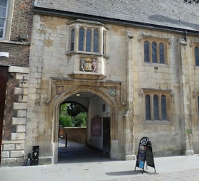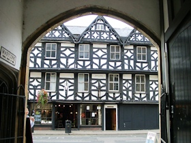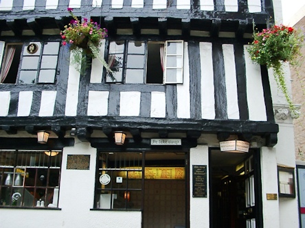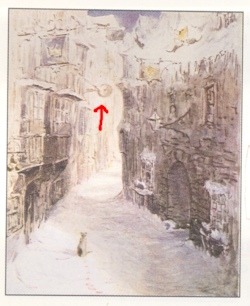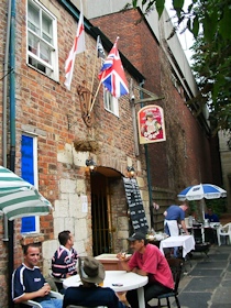 ▼歩行者天国 大聖堂の周辺にある通りの名前、ウェスト、イースト、サウス、ノースの道路は歩行者天国で、イーストには大きなショッピングセンターがあり、ノースにはデパートが、サウスには運河へと続く道が、そしてウェストゲート・ストリートにファンが喜ぶスポットが集約されています。 ウェストゲート・ストリートについては、8日目のポター・アトラクションについて紹介する時に改めて書くことにして、歩行者天国で見つけたショップ。 ![]() ウェストゲートの「The Tailors House」というパプ(写真左)。仕たて屋の主人がバーテンダーをしている看板が見えると、ポターアトラクションはすぐ近く。サウスゲートにあるこちら(写真右)の建物は250年以上の歴史をもつ「G A BAKER&Son」という名前のジュエリーショップ。毎時人形が鐘を鳴らして知らせてくれる。 ディック・ウィッチントンが聞いた鐘の音「ガラン、ガラン」とは程遠い「カン、カン」ぐらいの音色。(『グロースターの仕たて屋』を読んでくだされば何のことか分かります) ![]() 「G A BAKER&Son」の建物より突き出た装飾を施した時計台(写真左)。猫のシンプキンがグロースターの町をさまう挿絵に建物より、赤矢印で示した建物より突き出た時計台が描かれている(左:『グロースターの仕たて屋』より) ▼町並みは変わってしまっても気分は100年前に、1535年に建てられたフィッシュ&チップス屋 町の中に溶け込む大聖堂の景色を求めて散策していたら、とてつもなく古い建物を見つけた。築100年ぐらいだろうかと興味深く覗き込むと、そこはフィッシュ&チップスのショップだった。 ちょうどこの日の晩御飯を探していたので注文することに。陽気な店主に「この建物は築何年?」と質問したら、「1535年からだよ。さぁて何年かしらね」という返事が。築400年以上?!日本では考えられない!!逆に「日本の建物は築何年ぐらいなの?」と質問され、「100年もつかしら?」って答えると、「ハッハッハッ」と他のお客さん共々大笑い。 大樹の年輪と同じぐらいの年月を重ねる建物は、飽きられることなくこのまま未来永劫受け継がれていくのでしょうね。人々のこうした気持ちが100年前の景色を保つことにもつながっているような。 ![]() ノースゲート・ストリートよりヘア・レーンへ曲がった先にある「Ye Olde Restaurant Fish & Shoppe」建物外観(写真左)と正面から見たところ(写真右) ▼歴史を感じずにはいられない古いパブ 宿泊したホテルのすぐ近くにあった「Cafe Rene」。サウスゲートに面した通りから、壁面のゲート(写真)をくぐりぬけた先にあるため、ゲートの前で入って良いのかためらっていたら、奥の方から「カモン」って声がして、手にしたカメラを見て「自由に撮っていいよ」と。 ![]() ゲートをくぐった先の左手に「Cafe Rene」の入口(写真左) 店内は酒瓶が天井に隙間なくきっちりと並べられ(写真右)、もちろん壁にもたくさんの酒瓶が。 食事も楽しめるレストランのようで、こんなことなら夕食をテイクアウトしないでここで食べればよかったと思うほど、親切に声をかけてもらい嬉しかった。 ![]() パブにつながるゲートの向かい側、サウスゲートに面したこの建物もかなり年季が入った建物で、「Robert Raikes's House」と呼ばれる歴史的建造物。1560年に建てられたティンバーフレーム構造で、道行く人が素通りできずについ立ち止まって見入ってしまう美しさがあった。 ▼運河と倉庫街 サウスゲートを南に進んでいくと、運河の町と呼ばれるグロースター・ドック(波止場)が見えてきた。ここまで来ると、町の様子は一変し、倉庫が建ち並び海鳥が鳴く港町となった。 ![]() グロースター・ドックスの案内看板(写真左) 運河周辺に建てられた大きな建物はそれぞれの会社の倉庫。 ▼絵本の舞台を追いかけて 仕たて屋が店を閉め、家路につく挿絵と同じ町並みを探しました。ヒントは赤い矢印で示した大聖堂の見え方だけ。 ![]() 『グロースターの仕たて屋」より ![]() 大聖堂の塔の先端が見える場所を探しては、ここでもない、あそこでもないとウロウロ。結局のところ絵本の舞台に近い場所にはたどり着きませんでした。あちこち回って途方に暮れ、しかしこれもまた旅の思い出として刻まれていく。朝から寝坊して大慌ての一日がようやく終わり、ホテルに戻りテイクアウトした食事をいただくことに。 ▼Dinner ![]() フィッシュ&チップスのお店でテイクアウトした、カレーソース、エッグのピクルス、パン(写真左) 1.95ポンド 友人は、すりつぶしたマメをペースト状にしたマッシュビーン(写真右) 友人曰く、カレーもスパイスの味しかしないものもあり失敗が多いとか。でも、ここのカレーソースは小麦粉臭かったけれど日本に近い味で美味しかった。パンはごく普通の味で、マッシュビーンは味が薄く美味しくはなかったそうな。英国の料理は、ハズレも多いので、美味しいものを探すのは本当に苦労する。 グロースターの町を半日散策し感じたことは、『グロースターの