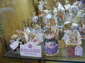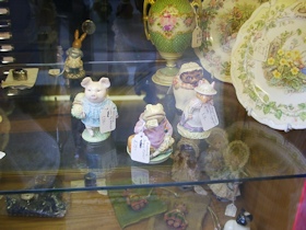 ▼アンティークショップ ピーターラビットアンドフレンズを出て、再び通りを歩いていると、目の端にピーターがチラッと写りこみ、また空似に違いないと自分をなだめつつ気になって入店。 ![]() ヨークのアンティークショップ やっぱり空似じゃなかった。店に一歩足を踏み入れたらそこはパラダイスが広がっていた。 ▼そこで見つけたものは?! ![]() ロイヤルドルトンシリーズのフィギュアがこれでもかと並べられ、写真右側の棚はもう収集がつかないほど。 ![]() 棚は一段だけでなく、上も下もロイヤルドルトンのフィギュアたち ボーダーファインのフィギュアも(写真右) もうこーなったらコバンザメのようにディスプレイに貼りつき見入ってしまい、にっちもさっちもいかなくなった私を友人がそっと引きはがし、「ラピータさん、欲しいフィギュアをリストして教えてくれたら、近いからまたそのうち来るので購入しておきますよ」という呪文を耳元で唱えてくれたのだった。 「ほんとに、いいの?そんなことお願いして」「うんうん(笑)」 そこで、この日はこのショップに入るきっかけとなったチラッと目に写ったピーター、それは棚の一番上にあったウェッジウッドのクリスマスプレート、1987、1988、1989年の3枚を購入。埃をかぶっていたこのプレート、でも棚の上でなければ私の視界に入ってこなかったかもしれないし、うさぎアンテナ恐るべし。 プレート3枚 54ポンド(1枚18ポンド) ![]() ![]() ピーターラビット専門店には少ししかなかったお宝が、あるところにはあるんですねぇ〜。うさぎアンテナ最高潮でした。 |
