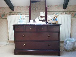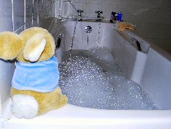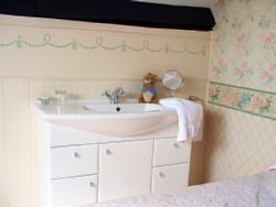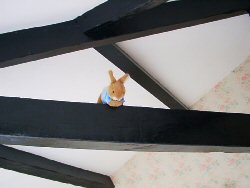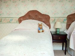 ▼EesWyke Country House 前回の旅行でポーチからのぞくだけに終わった「EesWyke Country House」。次回こそはこの宿に泊まろうとその時に固く心に誓った。今回の旅行で宿泊の予約を入れた際、なかなか返事がもらえずヤキモキしたものだけど、宿泊予約OKの返事が来たときは天にも昇るような気持ちで大興奮。 「EesWyke Country House」 Near Sawrey, Ambleside、Cumbria LA22 0JZ 場所はニアソーリーのはずれに位置し、「ヒルトップ」まで徒歩5分の距離 駐車場有り、宿の玄関前に数台駐車可 ![]() 正面玄関のポーチ 円筒状の柱に支えられた弧を描くおしゃれなポーチ上の飾り枠 ![]() (写真左)車で到着し、荷物を降ろしている間にも人懐っこい看板犬のイングリッシュシープドッグのテディ(ブラックアイ)と、ハリーが「Welcom」の挨拶にやってくる。 (写真右)宿への看板はホークスヘッドに続く道より少し奥まったところにある 目次のタイトルにあえて「ホテル」と言ってしまうほど立派なたたずまいの建物だけど、英国では「B&B」として気軽に宿泊できる宿となっている。でも観光シーズン時期である7月、8月の宿泊客は多く、常に予約がいっぱいだとか。 何故そんなに人気なのか。。。 ▼ビアトリクス・ポターの風景画として これはあまりにも有名な話で、文献などでも紹介されているとおり、かつて「レイクフィールド荘(Lakefield)」という名前だった頃、ビアトリクス・ポターが初めてニアソーリーにやってきた時に泊まった宿として、またここから見えるエスウェイト湖の美しい景色に魅せられてこの地(ニアソーリー)に家を構えようと思ったきっかけとなった場所だから。 ![]() ビアトリクスポターがスケッチしたレイクフィールド荘(現在のEesWyke Country House)の景色 (風景画/左)「An English Garden:Lakefield,Sawrey」イングリッシュ・ガーデン、ニアソーリーのレイクフィールド荘より (風景画/右)「Harvest:view from Lakefield,Sawrey」収穫−ニアソーリのレイクフィールド荘からの景色 「PETER RABBIT'S GARRDEN」 A BEATRIX POTTER EXHIBITION 世界巡回展−出版100周年記念「ピーターラビットの世界」 ヴィクトリア&アルバート美術館所蔵原画を中心として 2002年日本で開催された原画展の図録より 80番、82番で紹介された原画は、「EesWyke Country House」より見た風景 文献では、1896年、1900年、1902年にポター家が休暇を過ごした場所として紹介されている。 「ビアトリクス・ポター 描き、語り、田園をいつくしんだ人」ジュディ・テイラー(著) 吉田新一(訳) 福音館書店(刊) 「美しい風景を見ると描かずにはいられない」という言葉を残していたビアトリクス・ポター。ニアソーリーの高台にそびえる「レイクフィールド荘(現在のEesWyke Country House)」からの眺めるエスウェイト湖はそれはそれは美しい。 ▼EesWyke Country Houseから見るエスウェイト湖 私と友人が泊まった部屋は家の中からは3階に当たるが、実際は天井の梁がとってもおしゃれな屋根裏のロフト部分。窓は天窓のみ。だがこの天窓が素晴らしい。屋根の上に向かって開く天窓から覗くと外の景色ひとりじめ。まるで小鳥になった気分で景色を眺めることができる。 ![]() ![]() エスウェイト湖は『ジェレミー・フィッシャーどんのおはなし』の舞台とされている。湖から生えているアシの茎やスイレンの葉など今もその面影が残る。 ![]() (写真左)天窓から景色を眺めるピーター「でも落っこちそうで怖いよぉ〜」 (写真右)エスウェイト湖の対岸から見た宿の全景。 ▼部屋の内部 部屋の内部は広々としたツインルーム。ここを一人で占領。部屋についている備品もいたれりつくせりで最高に贅沢気分を味わえる。 ![]() (写真左)天窓の下に鏡台が設置されていて、鏡台の上にはガラス容器にコットンが入っていて、その横にはソーイングセット、自由に飲んでもいいウォーターが用意してある。 部屋の備品はこの他にも、タオルはもちろんのことバスローブや、フットパスを歩いて靴が汚れた人のために靴磨き用のブラシとクリームも用意されて、いたれりつくせり。 (写真右)私が最も気に入った真っ白な洗面台。ベットの脇にありなんだかお姫様にでもなった気分。 ![]() (写真左)ピーター君は座ったけれど、結局私は一度も座れなかった。。。 (写真右)ベットの居心地が最高。くつろぎすぎてぐっすりと眠ったため天窓からの夜景の写真は無し。 ![]() 「おや、こんなところまで」天井の梁から部屋をのぞきこむピーター。 私が泊まった部屋は「Twin private facilities」だったため、トイレとバスルームは部屋の中にはなく、部屋を一旦出なければならない。いちいち鍵を開けたり閉めたりするのが面倒だったが、お気に入りの洗面台が部屋の中にあるということがうれしくて多少の不便は目をつぶることにした。 もちろんバスルームにも天窓がついていて、天窓からしーんと静まり返った闇夜を眺めながら入るお風呂は格別。バスジェルを入れて、広い浴槽に身を沈め天国気分を味わえる。 ![]() でもバスルームにあるべきものがここにはないこ
