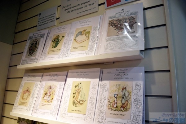 ▼ヒルトップ農場のショップはオリジナル品だらけ 英国旅行記の中でも、日本一詳しくまとめた「ヒルトップ農場」についての記事、今回が最終回です。日本一なんて大層なことを書きましたが、内容はマニアック過ぎますし、更新頻度は遅いですし、読者の皆さまにおかれましては、きっと呆れていらっしゃることと思います。(^^; 私達は「ヒルトップ農場」がオープンする30分前の9時30分に到着し、まずはチケット売り場へと向かいました。チケット売り場は、9時50分頃にオープンし、朝一番の10時に入場できるチケットを購入することができました。 ヒルトップ農場内の「ガーデン」と「ショップ」は、チケット無しで入場可能ですが、「ヒルトップハウス」はチケット売り場で時間指定チケットを購入します。施設保護のため、入場できる人数が決められていて、混みあった時間帯になると入場まで待つことも予想されます。私達は、ヒルトップ農場を含むニアソーリー&モス・エクルス湖の見学も予定していたので、ランチの時間を含め3時間30分ニアソーリーに滞在しました。 さて、ショップは、ニアソーリーのメイン道路に面した入口から入ってすぐの建物にあります。ヒルトップハウスへは、この建物の脇を通り過ぎ、お花畑の小道を進みます。 ![]() ヒルトップ農場のショップ外観。小さな建物なので、覗きこまなければ通り過ぎてしまうかも。 ![]() これまで見られなかったような「ヒルトップ」のロゴ入りや、ヒルトップハウスの外観が描かれたグッズ(ノート、鉛筆、ボールペン、帽子、木製ポストカード、マグカップ、ティータオルなど) ![]() ビアトリクス・ポター・クラシックキッチンウェア(トレイ、ナプキン、カップ&ソーサー、マグセット、ミルクジャグ、ティータオル、オーブングローブ、エプロン、ハンドタオル) ![]() ボーダーファインのフィギュアシリーズ ▼こねこのトムたちの木戸 ![]() ヒルトップショップ限定フィギュア「こねこのトムの木戸」25ポンド(Hill Top Exclusive Figurines) ![]() 『こねこのトムのおはなし』に描かれた木戸。 ![]() ビアトリクスは、正面入り口(現在ショップのある方)ではなく、木戸の方がヒルトップハウスに近いため、こちらを利用していた。写真は木戸の内側より眺めた景色。ここから、結婚後に移り住んだカースル・コテージが見渡せる。 ![]() ショップの話に戻りますが、先程のヒルトップショップ限定フィギュアは、他にも「ひげのサムエル」がありました。2019年は「あひるのジマイマ」が発売になっているようです。 ![]() 『まちねずみジョニーのおはなし』と、『アプリイ・ダプリイのわらべうた』の出版100周年記念ボックス。金の縁取りがついた豪華装丁本と、革の栞、解説書がついたスペシャルレザーケース入り。100部限定、各125ポンド ▼ショップの品々 ![]() ポストカードはここで購入し、グロースター大聖堂前のポストに投函しました。 ![]() グリーティングカード ![]() GUND社製のぬいぐるみ ![]() 缶入り紅茶 ![]() 書籍 ![]() ハンドペイントの円盤ステンドグラス ![]() エコバッグ(ミツバチ柄とヒツジ柄の2種)ここでしか購入できないから、後から思えば買っておけば良かったと思う品。 ▼ヒルトップオリジナル刺繍キットはここでしか買えない ![]() ヒルトップショップオリジナル刺繍キット。ナショナル・トラストショップでしか購入できない刺繍キット。ビアトリクス・ポター協会のジャーナル&ニュースレターNo.123号で、このキットを制作した作者の記事が掲載され、友人がひと目で気に入り欲しいと念願していもの。キャラクターだけでなく、挿絵に描かれたそのもの背景が図案化されているところがお気に入りのようでした。 ![]() 画像では分かりづらいですが、上の段の右端はヒルトップハウスの全景で、同じく上の段の左端は庭のお花畑の小道とヒルトップハウスが図案化された刺繍キット(各18ポンド)です。2012年制作されたこのキットは、発売当初5種類だったものが、現在は8種類に増えていました。 ▼ヒルトップのガイドブックは日本語版もあり ![]() 日本語版)「ヒルトップガイドブック」(ナショナルトラストのガイドブック出版部制作 2016年版)ヒルトップハウスの構造、歴史、各部屋にある調度品などの説明や、丹精こめて励んだ庭づくりのことなど紹介。 ![]() 日本語版)「ビアトリクス・ポターの湖水地方」(ナショナルトラストのガイドブック出版部制作 2016年版)ビアトリクスが、自然保護活動に打ち込んだ数々の実績をまとめたもの。 昔はここに来なければ買えなかったガイドブックですが、今はアマゾンでも購入できます。便利になったというか複雑ですね。 小さなショップですが、心躍る楽しさが詰まってます。またカウンターには、宝物部屋にあったミニチュアブロンズフィギュアも販売されています。ひとつ注意すべきと言えば、ツアー旅行はヒルトップ見学時間を30分と見ているので、ヒルトップハウスでおおよそ20分から30分、ガーデンを