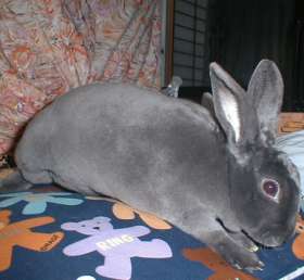 新タイトルは・・・・ そうなんです。去勢手術をしてからというもの、レッキーはかなりの いい子ちゃんに変身しました。 まず、スプレーをしなくなりました。以前のレッキーの状態は、言わずと知れた ”しっこ飛ばしの帝王”でしたが、それがぴたっとおさまったのです。 はじめは、病院から戻ったばかりでまだ家に慣れてないからきっと 「借りてきたウサ」状態のせいでおとなしくしてるんだ、と思っていましたが 3日がたち、1週間が過ぎた今でもまだ一回もスプレーしないんです。 「これは本物かも・・・(^^;)」と密かに喜ぶ飼い主なのでした。 そして次に、気性が穏やかになりました。 それまでのレッキーは、誰もが認める”暴れん坊将軍、徳川ウサ宗”の 異名を取っていて、なでなでをしようもんならガブリと襲いかかり、 抱っこしようもんなら後ろ足の鋭い爪で蹴りが入る、という(飼い主にとっては) 悲惨な状況でした。しかし、手術後のレッキーは違っていたのです。 なんと頭をなでてあげると、じ〜っとしているではありませんか! 最初は、「噛み付くチャンスを狙っているのではないか?」と、いささか疑って かかっていたのですが、長いことなでていてもそれでもじっとしているので、 どうやらこれも「本当におとなしくなった」らしいです。 もう、嬉しくって嬉しくって一日に何度もなでなでしてしまいます(*^^*)。 ただ、今でも抱っこしようとしたり、嫌がることをしたりすると噛もうとする ことはありますが、今までの苦労を思えば、抱っこはできなくてもかまわないし、 嫌がることさえしなければいいので、本当に楽になりました。 ケージから出すたびにあちこちにスプレーしてその度に拭いては出し、 拭いてはまた出し、を繰り返していたのがうそのようです。 精神的なしんどさが軽減されたこともあり、今までの10倍も20倍も レッキーのことが大好きになりました。 声を掛けてあげる回数も増え、ケージの外に出してあげる時間も長くなりました。 去勢手術を受ける前までのレッキーは、本当に落ち着きがなくて、足を伸ばして リラックスする姿さえ見られなかったのが、今ではゆったり寝そべっています。 暴れん坊うさぎを飼っていらっしゃる方は他にもたくさんいることと思いますが、 それぞれ、うさぎさんとの付き合い方や対処の仕方はいろいろあり、 去勢手術に関しても賛否両論あるかもしれません。 我が家でも手術を受けるか否かずいぶん悩んだ時期もありましたが、 こうして、「飼い主もうさぎも落ち着いて向き合えることができるようになったことを 思うと、我が家の場合は手術をして本当によかった」と思っています。 ご相談していろいろなアドバイスや励ましの言葉をくださったラピータさん、 そして手術をしてくださった病院の先生に本当に感謝しています。 うさぎは去勢後1ヶ月でみるみる性格の変化を感じ取れると先生がおしゃってましたが、レッキーちゃんの攻撃的な性格が消えて本当によかったです。 ころさんのおっしゃる通り、去勢がすべての解決法であるとは私も思いませんが、 でも去勢することにより人間とうさぎの関係がよりよくなるという事実もたしかです。 ご紹介ありがとうございました。 <ラピータより> | ||||||