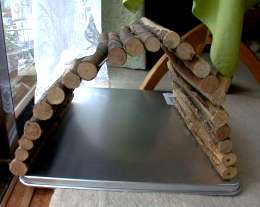 ワイン箱にわらをいれて、別荘を作ってみました。ちょっと深さがあるので、のこぎりで少し切ってやろうかとも思いましたが、軽やかなジャンプで出入りしています。 食べて、掘って、どてんとねていました。 干草のベットはどうなんでしょうかねえ。 1度してあげようと思いつつ、今日までのびてきましたけど。 晴れた日に天日干ししたら、ふかふかのアルプスの少女ハイジのベットのように なるのかなあ??? 深さがあると、わらが、まき散らからないのでちょっとうれしいです。 少し様子をみて、もし危なそうだったら、少し切って低くしてやろうとおもっています。 |