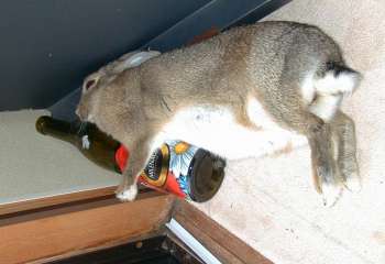 ![]() 我が家のももっちのおもしろい写真をおくります。 いつのころからか、ももっちはワインのビンをだきまくらにして 昼寝するようになりました。 たしかにももっちは、ワインがちょっとばかりすきです。 指についたのを近づけるとぺろぺろします。 ワインのビンはもとはといえば、テレビの横の隙間を少し埋めるために 置いてあったのです。 (テレビ台をかじるのを防止するためでもあったのですが。私的には) いつのまにか倒れて、ほっといたら、ももっちがそれを枕にねるようになりました。 最近、少しおしゃれな柄のものに交換しました。 これも気に入ってくれたようです。 主人いわく、うさぎは何羽かかたまって寝ていることが多いから、 ももっちもそのつもりじゃないかと言ってました(^。^) プーちゃんとグーちゃんだって、最近ではなかよくくっついて お昼寝してますものね。 いやー正直、この写真は笑ってしまいました。 我が家のプーも時々ひっくり返って寝ることはありますが、瓶を抱えて(それもワインの瓶だもの)熟睡しちゃうとは。 ももちゃんは、このテレビの後ろがよっぽどくつろげる場所なのでしょう。 我が家もそういう場所が何箇所かあって、そういうところでは時々キュートな寝姿披露してくれます。 こちらまで眠たくなってしまうぐらいかわいい寝姿。ご紹介ありがとうございました。 ラピータより |