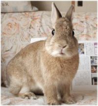 | 色 | うさぎのカラー分類:オレンジ 明るい茶系 (少しおしりにかけてシルバーがかっている) おなかの色は真っ白。 しっぽは、茶色。しっぽの毛が少なくあまりふさふさしていない |