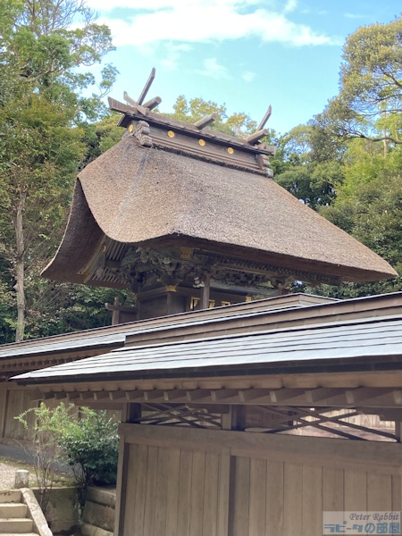 ![]() 神磯の鳥居から90段ほどある階段を登った先に隋神門があります。 ![]() 随神門に御祭神と関係が深いウサギの彫刻が施されています。ウサギが2匹いるのが分かるかしら? ![]() ウサギの彫刻は、随時門のこの辺りです。 ![]() 拝殿の周りにはカエルの石像が鎮座していました。 ![]() ご本殿は、とても美しい茅葺き屋根でした。 ![]() みちびきうさぎみくじ 今年の干支を象徴する巨大絵馬と同じ絵柄のみちびきうさぎみくじです。 爪を伸ばして今にも飛びかからんとする姿で迫力があります。結果は大吉で、本気で取り組めば願いが叶うとありました。 ![]() ![]() うさぎ絵馬、3種 ![]() 幸おまもり 神々しい磯の上に立つ鳥居を仰ぎ見ながら、境内はウサギと縁が深く、とても気持ちの良い参拝でした。 海のパワーを感じつつお参りなさってくださいね。 |
