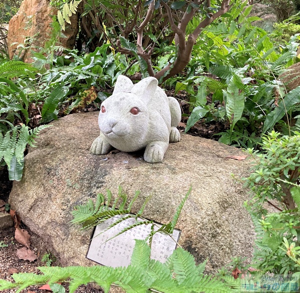 ひと言:境内はうさぎ尽くしでうさぎ好きは立ち寄らずにいられない場所。
