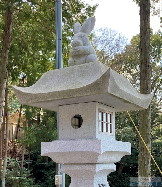 恩智神社 参拝駐車場にある石灯篭の上にうさぎ