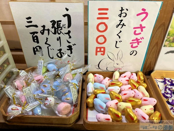 兎の紋がつけられたお守や、おみくじうさぎも。