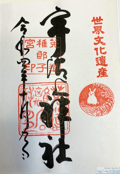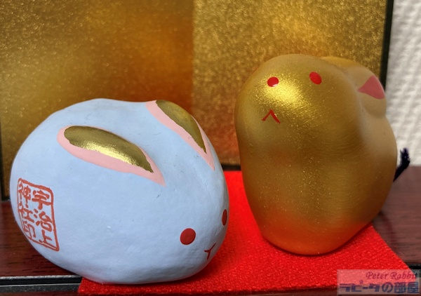 ![]() 鎌倉時代の前期に建立された拝殿 拝殿の奥にある御本殿が、日本最古の神社建築だそうです。 宇治神社のすぐ近くにある宇治上神社もうさぎとご縁がある神社です。この地の「宇治」という地名は、元々うさぎのみちと書いて「菟道(うじ)」と呼んでいたとか。 ![]() うさぎ張り子みくじに、パステルカラーのうさぎみくじもあります。 ![]() 御朱印にもうさぎ ![]() 張り子は水色、うさぎみくじはゴールドを購入。どちらも300円 張り子は袋の中にみくじが入っています。どちらも大吉でした! カラーバリエーションも豊富で全部欲しくなっちゃうこと間違いないでしょう! |