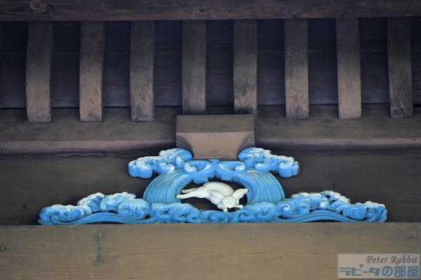 ![]() 本殿 何故この神社とうさぎが関係するのかと言いますと、約350年前に、西海大地震に襲われた周辺の神社は津波の被害に遭ったが、その時この神社に一匹の白兎が現れ、津波を蹴って救ったと伝えられているためです。 ![]() 本殿裏に災害の守り神、開運 厄除けの白兎が見られます。 ![]() 御朱印 300円 御朱印にも厄除けの白兎の印が押されています。開運うさぎ守もありました。 |