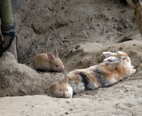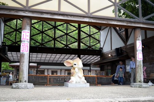 ![]() 月うさぎの里のメイン「うさぎ広場」は正面入口を入ってすぐ(入場無料) ![]() 月うさぎ神社 「ツキを呼ぶ」と伝えられる月うさぎ神社 ![]() 月うさぎの里のリーフレットによりますと、うさぎ広場はこんな感じだそうですが、 ![]() ・・・訪れた時間がいけなかった。ウサギたちはお昼寝タイム。広場の隅っこや角を陣取りウトウト ![]() 広場にある砂場は、巣穴トンネルがあちこち掘られていました。 「あるところにたくさんのうさぎたちがいました。そのうさぎたちは竹の木のしたの砂の穴の中にすんでいました。」ピーター家族も住んでいるかもしれませんね(笑) ![]() こんな時間帯でも元気なのは、巣穴から目で追えないスピードで出入りする仔ウサギたち。元気が良すぎてじっとしている間がほとんどなく写真もブレブレです。 ![]() それから200円で売っている「うさぎのごはん」のカサカサという音に反応して、お昼寝タイムのウサギたちがあっという間に寄ってきて争奪戦を繰り広げるほど元気になりました。例えばお気に入りの子にあげたいと思ってペレット入りの紙コップを握っていても、横から紙コップごと奪うという大胆不敵なウサギもいるほど。これぞウサギならではの光景でした。 ![]() うさぎの楽園かと思いきや、ケヅメリクガメ(2匹)もいました。ウサギとカメの2ショットを撮りたくてカメの大好物300円のおやつ(この日は小松菜でした)を購入し、小松菜はウサギの大好物でもありますからウサギもカメも大喜びで小松菜に夢中というツーショットが撮れました。 でもウサギは小松菜の芯も食べるのに、カメは芯いらないって食べないんですよ。贅沢ですね(笑) ![]() うさぎの広場でウサギたちと戯れた後、お食事処「加賀兎郷」で店内自家製ごまうどんを食べました。うどんがもちもちして美味しかったです。 ![]() うさぎ雑貨が2000点以上あるショップは目移りして大変です。その中でも映画公開キャンペーンでピーターラビットグッズも販売されていました。ここに来る車内でラジオからGW行楽地紹介で「月うさぎの里」がインタビューを受けていて、ピーターとのコラボしていることも紹介されていました。 うさぎ好きにはたまらない場所ですが、そもそも何故加賀にあるのか疑問でした。その謎がショップのポップに「加賀ではうさぎのものを贈ることがツキと幸福を贈るという意味で大変喜ばれています」とありました。 加賀の人たちは何かあるとうさぎの品を贈り、贈られ、生活に溶け込んでいるのかしら?なんて想像し、なんて素敵な町だろうと思いました。 |