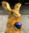 大阪のパワースポットに 神兎として翡翠の撫で うさぎが鎮座する。 |