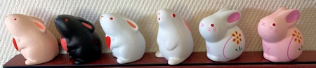 卯年生まれの守り神につき、 境内はどこを見ても うさぎだらけ。 |